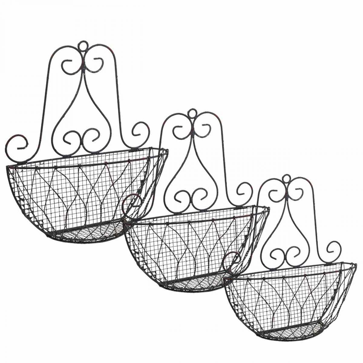 Panier suspendu plantes métal aspect rouille H30/33,5/40cm lot de 3