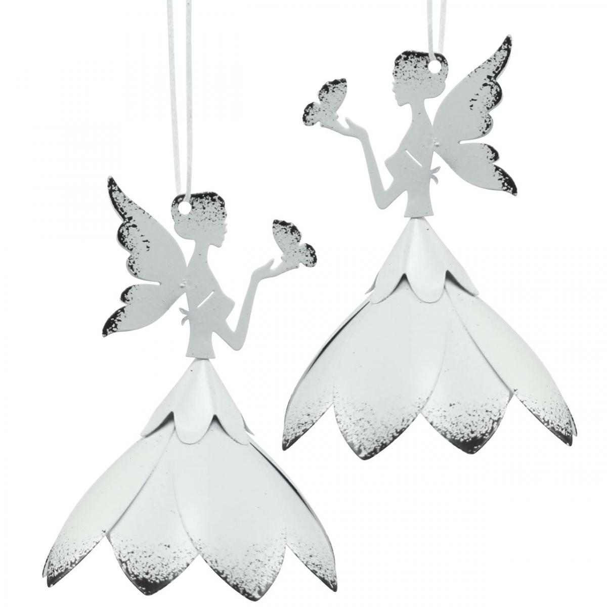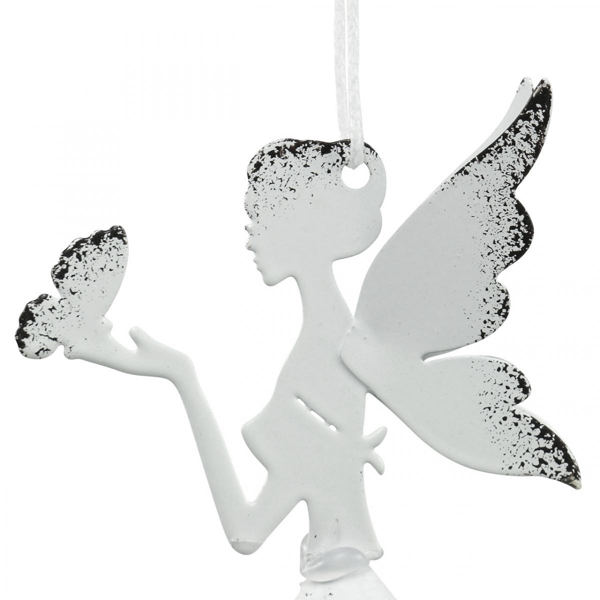 Produktname: Hänger Anhänger Elfe Deko Metall Weiß Ø6cm H9cm 4 St