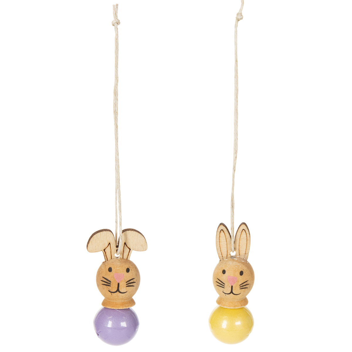 Nos suspensions décoratives lapins allient un design charmant à une grande polyvalence. Chacune des douze suspensions est fabriquée en bois de haute qualité et mesure environ 4 cm, une taille idéale pour s'intégrer facilement dans n'importe quelle pièce. Les visages des lapins sont réalisés avec un grand souci du détail : un petit nez, des yeux pétillants et des lignes délicates – tout simplement adorables ! Une touche charmante : les petites clochettes en métal coloré, assorties en cinq teintes pastel. Elles ajoutent une note ludique et tintent doucement au moindre mouvement.
