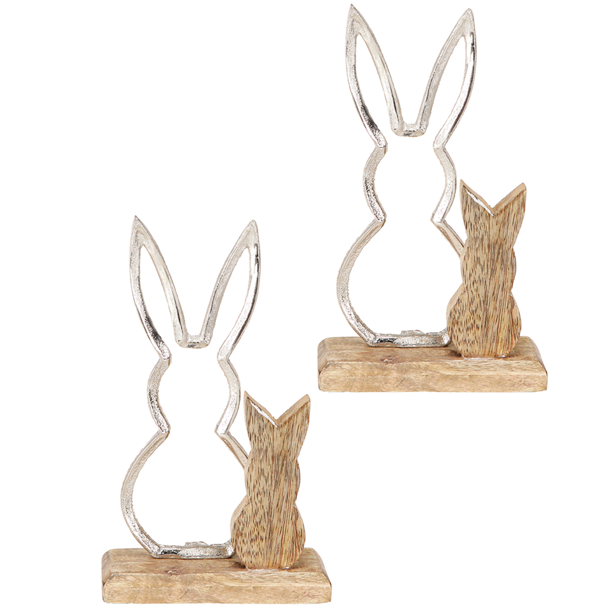 Coniglio decorativo in metallo e legno – Moderna figura pasquale in design naturale 22 cm 2 pz.