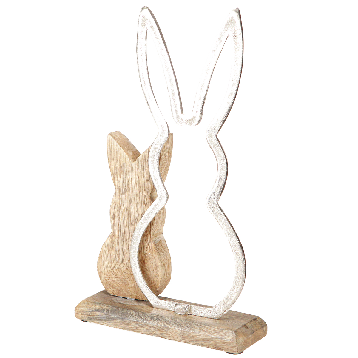 Lapin mère avec enfant lapin décoration argent naturel 26,5cm