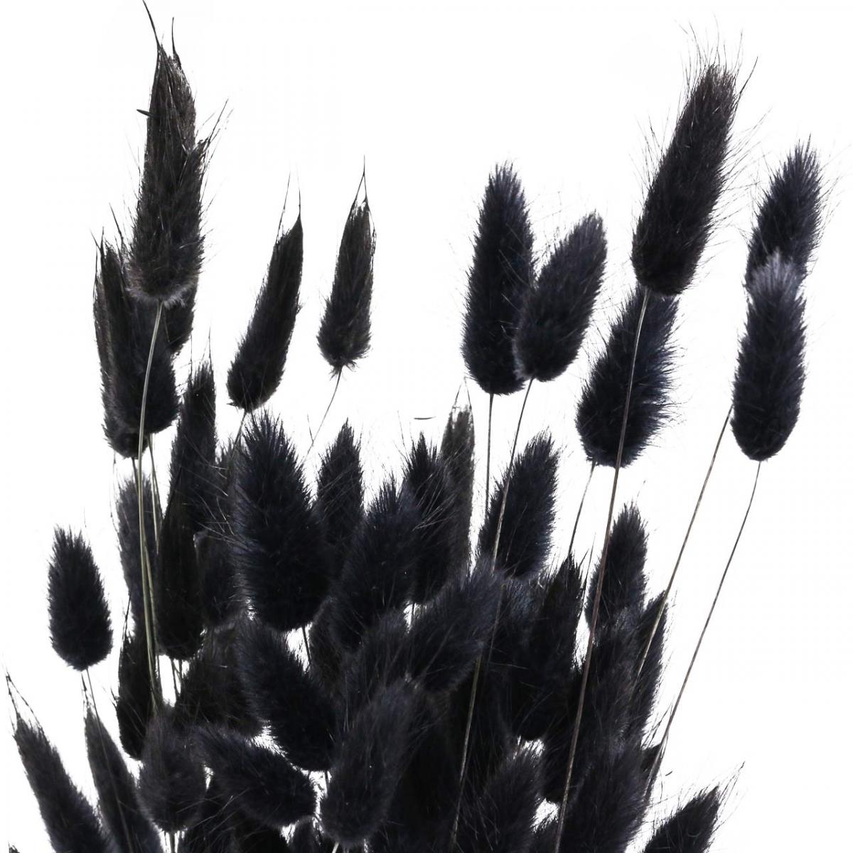 Dans ce pack, vous obtenez le Lagurus en noir avec un poids net d'environ 50 grammes. Certains des chaumes ont conservé leur couleur naturelle. Les inflorescences molles, quant à elles, sont noir corbeau.