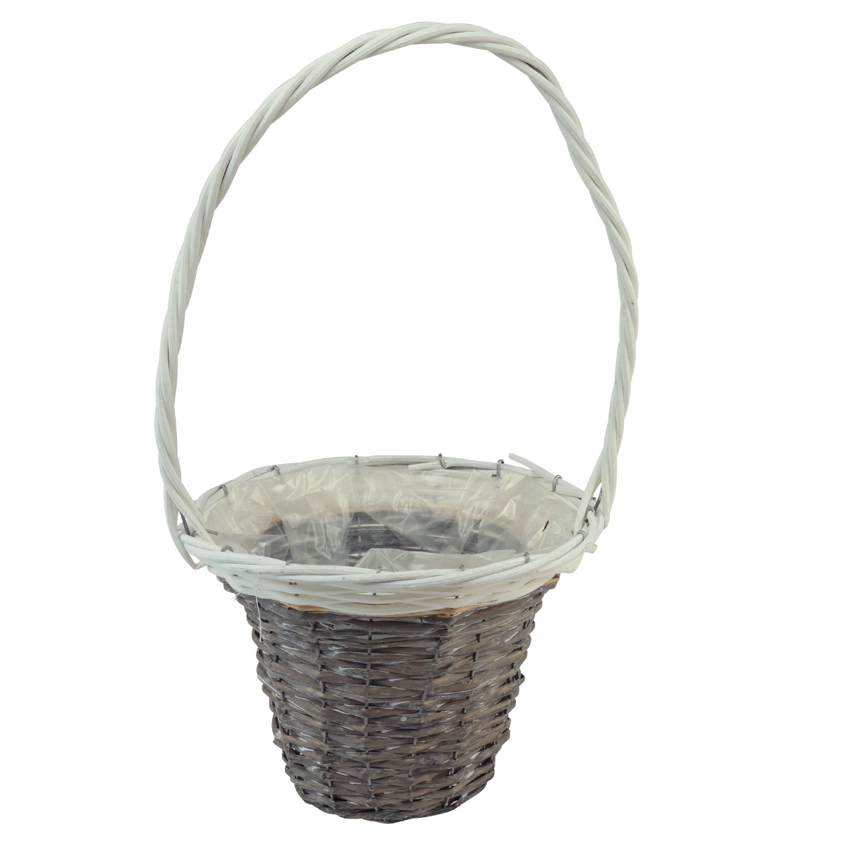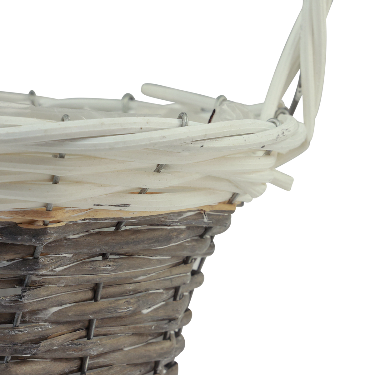 Panier en osier avec anse, gris et blanc, Ø 29 cm, cadeau, décoration florale