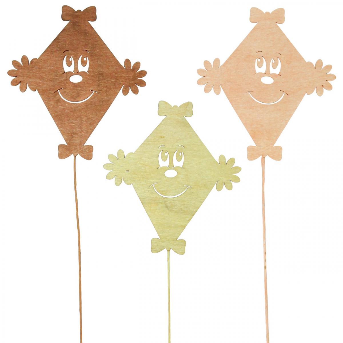 Die Pflanzenstecker-Deko als Drachen für den Herbst kommt dreifach farbig sortiert in einer Packung zu insgesamt zwölf Dekosteckern.