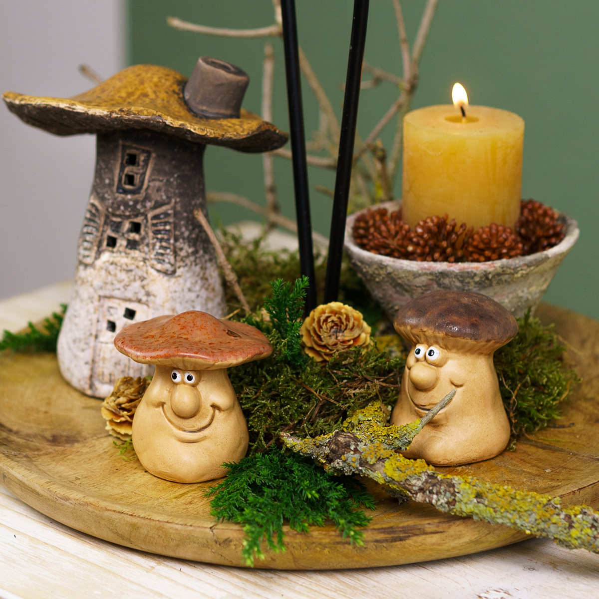 - Gestalten Sie eine herbstliche Fensterbank mit Igel, Blumensteckern und Pilzen auf getrocknetem Deko-Moos aus unserem Sortiment.