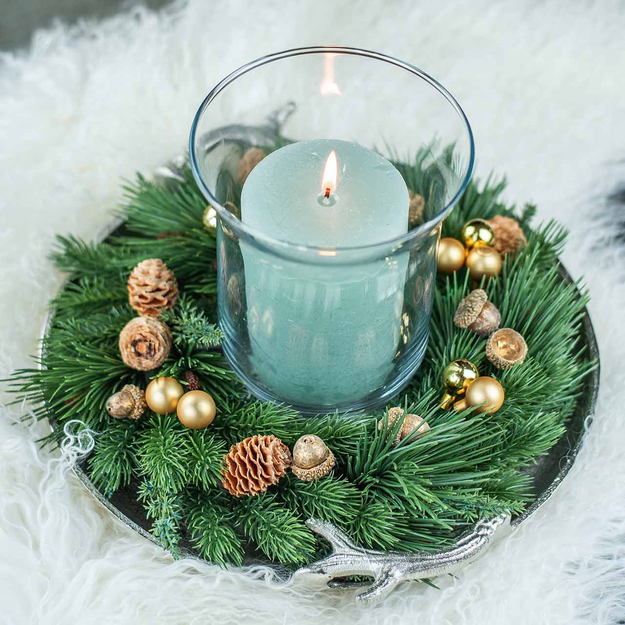 Kombinieren Sie dabei auch weitere Naturdeko wie Eicheln zum Basteln in Naturton und Silbern, Holzelemente oder herbstliche Trockenblumen und Tannengrün mit den Deko-Eicheln.