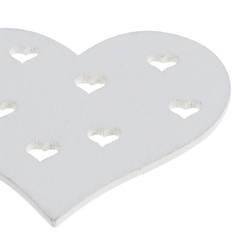 Le mélange des cœurs est parfait pour décorer la table à manger ! Vous pourrez diffuser les objets sur la table ou encadrer un arrangement floral. Les cœurs vont très bien avec un mariage mais aussi avec un anniversaire ou un rendez-vous avec votre chéri ! Vous pourrez les utiliser aussi pour faire des bricolages : Fixez les cœurs aux cartes d’invitation, cartons de table ou bien un poster. Ou agrémentez vos pots de fleurs avec ces petits cœurs. Tout est possible. Les cœurs sont aussi idéaux pour décorer votre rebord de fenêtre, une commode ou des cadres.Avez-vous besoin d’une idée déco pour votre mariage ? Que pensez-vous de ce mélange de cœurs en bois ? Ils sont très rustiques et donneront une touche de vintage à votre mariage. Une autre idée : Vous pourrez aussi bricoler un accessoire comme un serre-tête ou un fascinateur pour la coiffure de la mariée. Les cœurs blancs iront très bien avec votre couleur préféré : rouge classique, mais aussi mauve, bleu, or et argent. Il n'y a pas de frontières à la fantaisie !
