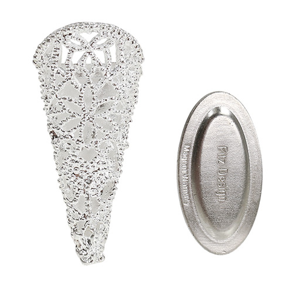 Vous cherchez une façon élégante de mettre en valeur les porte-noms sur vos tables de fêtes ? Alors optez pour cette broche de mariage aimantée haut de gamme couleur argent. Attachez la broche d’ornement à l’aide de l’aimant qui l’accompagne sur le porte-nom ou le menu et votre décoration de table sera parfaite jusque dans les moindres détails. Vos invités seront séduits tout comme vous par son motif floral en filigrane.En plastique très léger, la broche tiendra sans problème sur des matériaux fins comme le papier et le tissu. Vous pourrez par ailleurs glisser une petite fleur dans l’ouverture afin de donner à votre déco une note plus vivante et plus colorée. Fixez donc plusieurs de ces broches florales sur un ruban de soie et vous obtiendrez une guirlande insolite que vous pourrez employer comme décoration murale.