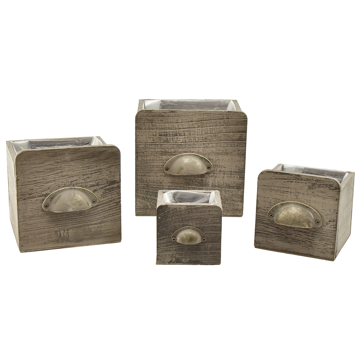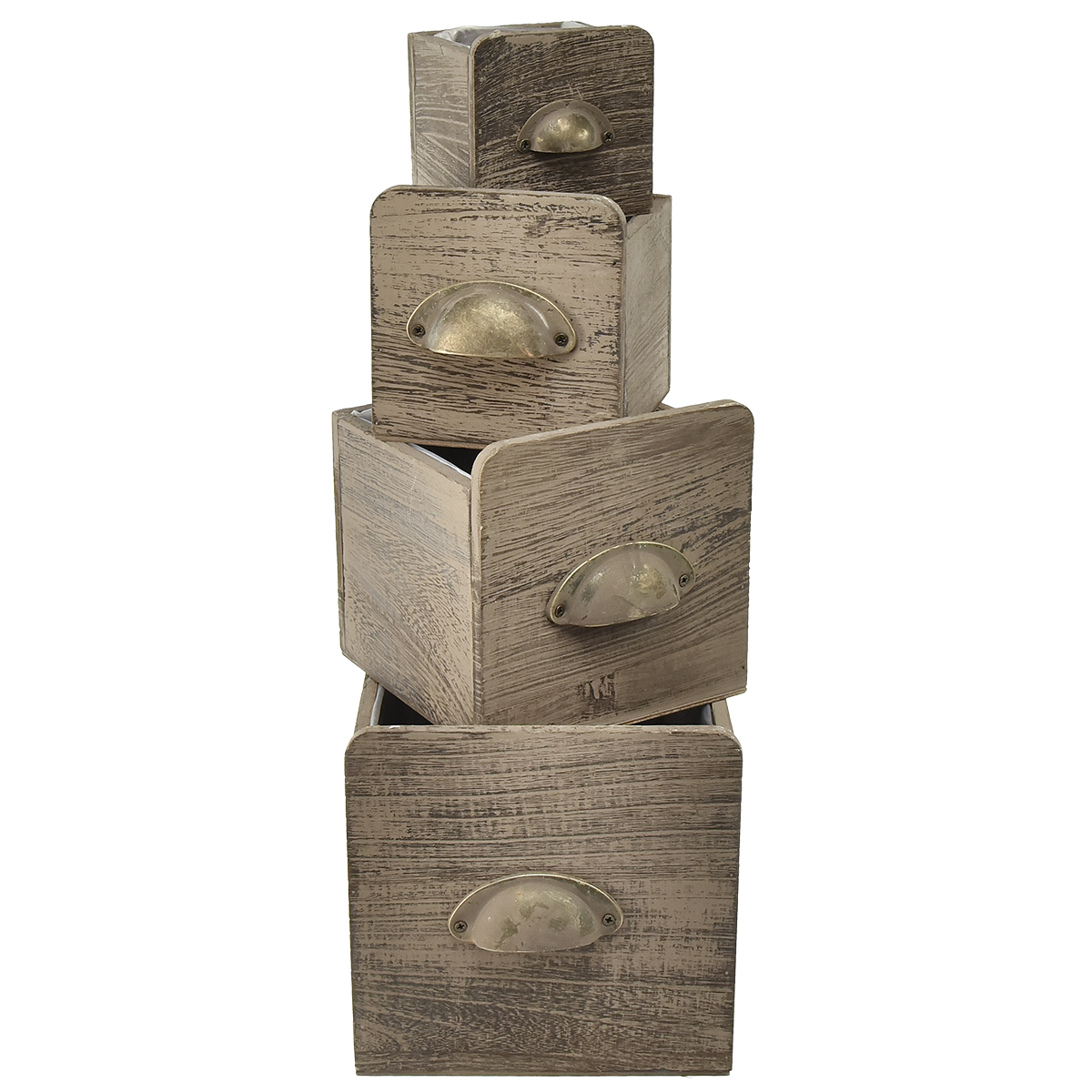 Set di cassetti in legno con maniglia, marrone strofinato - portaoggetti rustico, set di diverse dimensioni, 4 pezzi