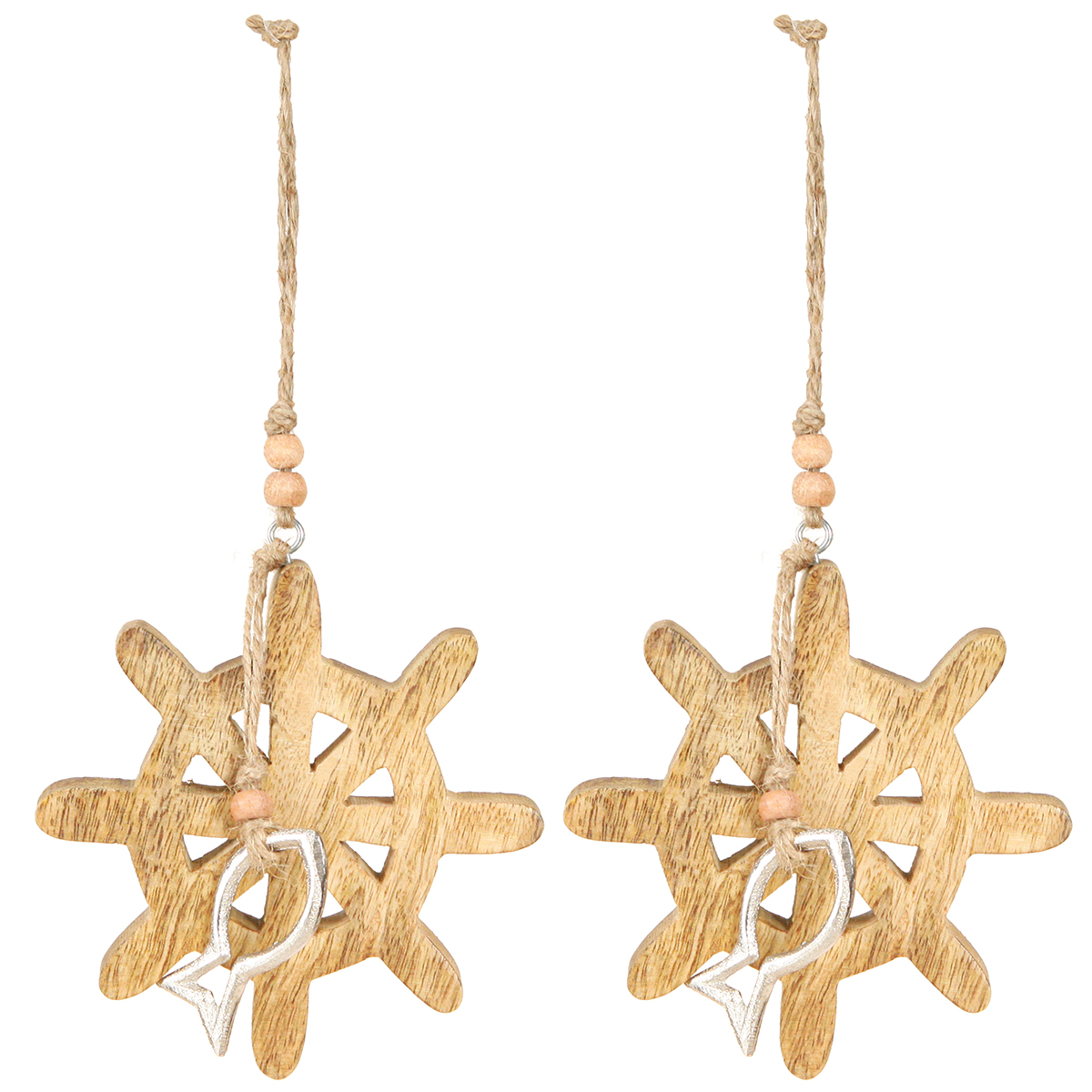 Holz Steuerrad Deko Metallfisch Anhänger Ø12cm 3St