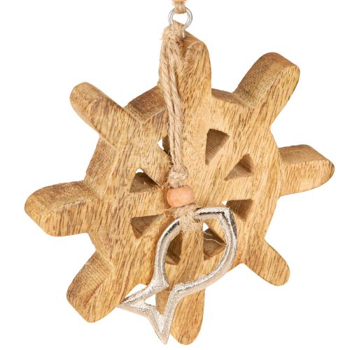 Volante in legno con pesciolino metallico – ciondolo decorativo marittimo in argento e naturale