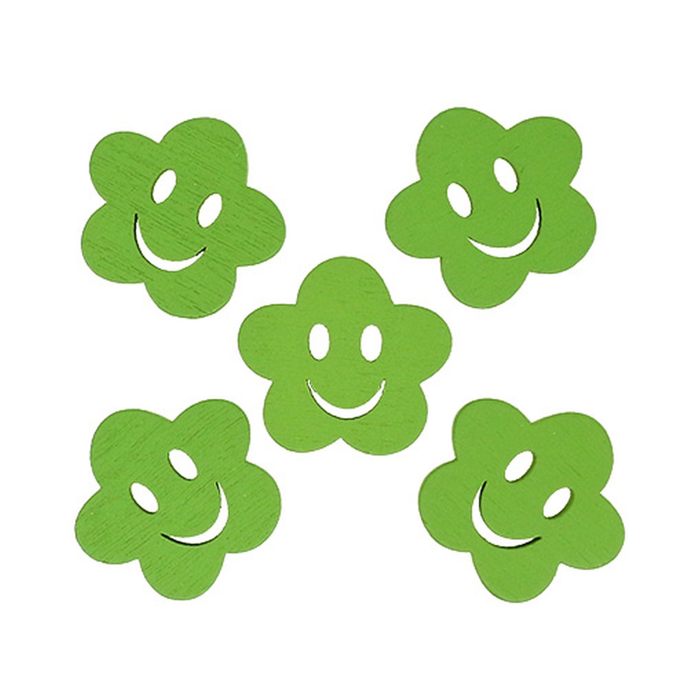 Holzblume mit Gesicht Grün 2,5cm 48 St