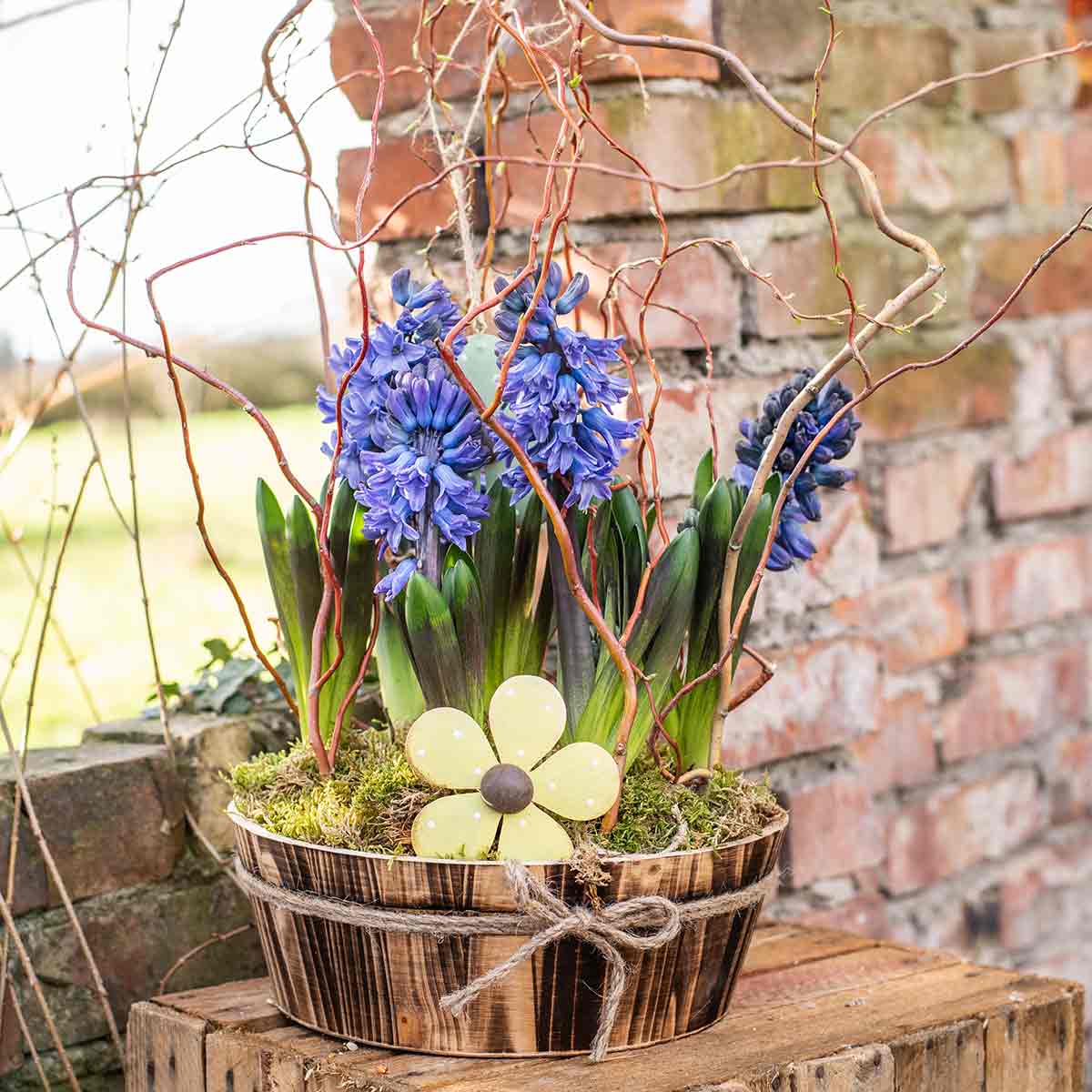 Je nach Saison lässt sich Osterdeko, Frühlingsdeko oder Herbstdeko im rustikalen Rahmen dieser Holzdeko gestalten.