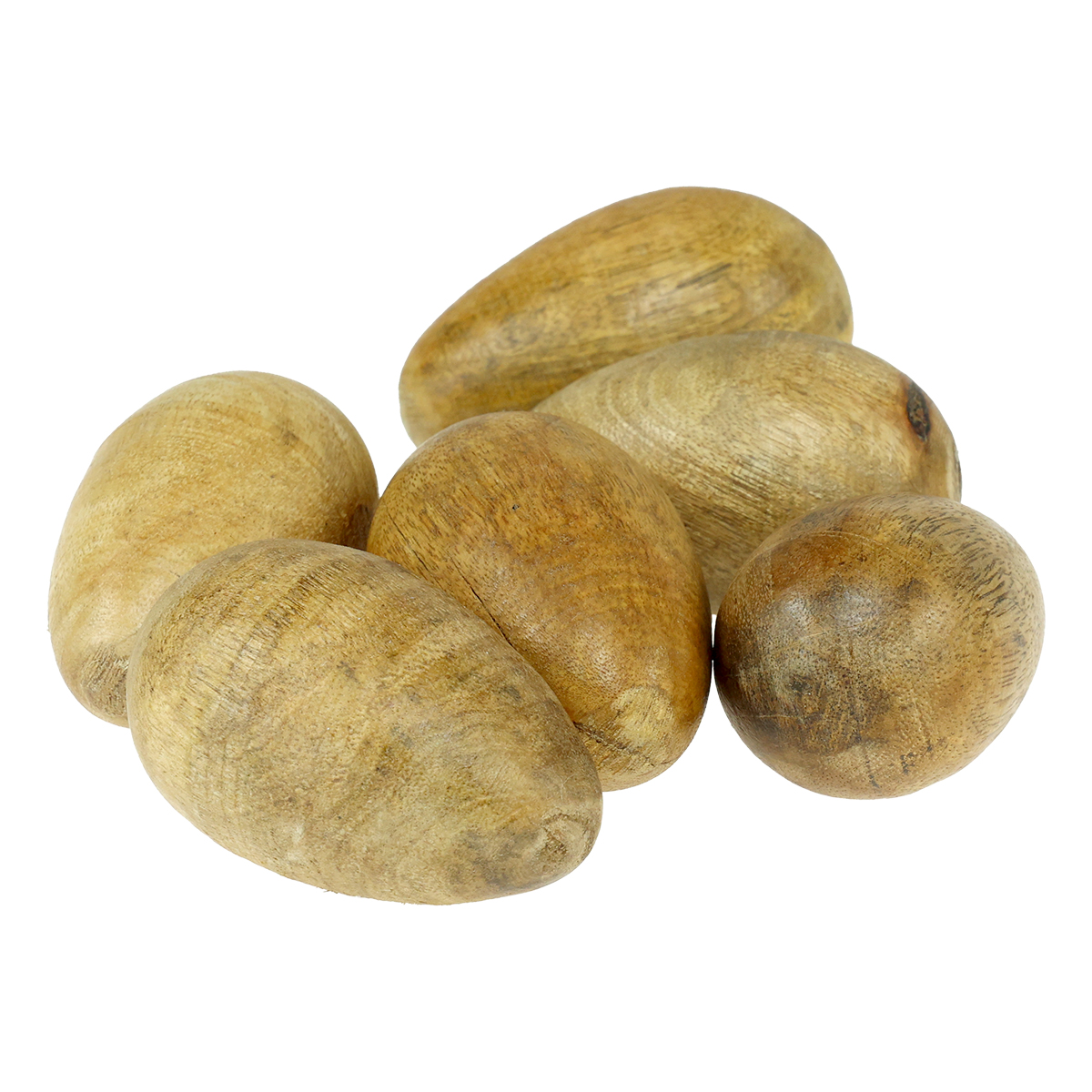 Holzeier Mangoholz im Jute-Netz Osterdeko Natur 7-8cm 6 St