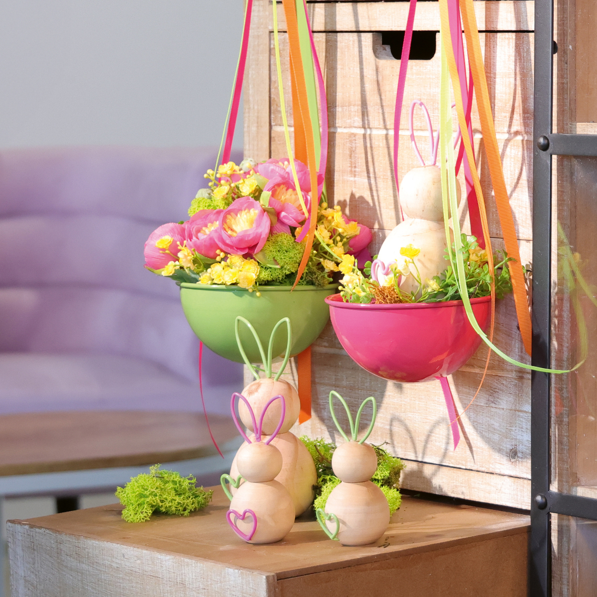 Durch die Kombination aus dem Körper aus Holz und filigranen Drahtohren, die in fröhlichen Farben gehalten sind, entsteht ein Kontrast, der sofort ins Auge fällt. Perfekt auch für alle, die auf der Suche nach einer kreativen Geschenkidee sind – sei es für den ersten Frühlingsbesuch oder als liebevolle Aufmerksamkeit zu Ostern. Die Packung enthält vier Figuren, sodass Sie Ihrer Deko freien Lauf lassen können.