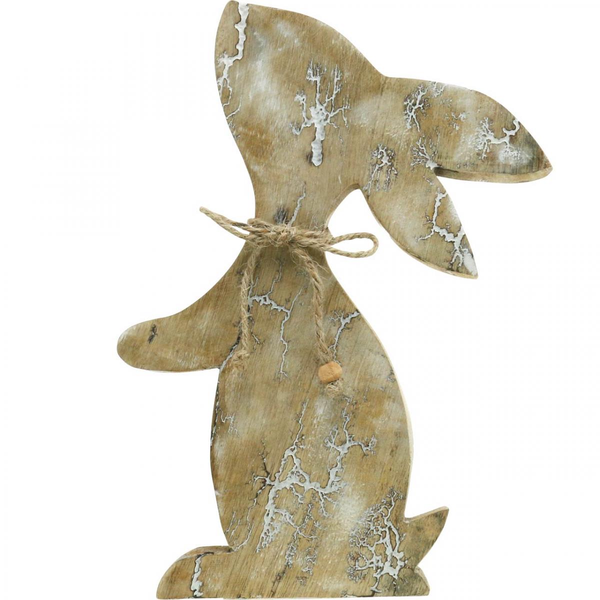 Coniglio in legno, primavera, coniglietto pasquale seduto, decorazione pasquale con motivo naturale, lavato bianco H26cm
