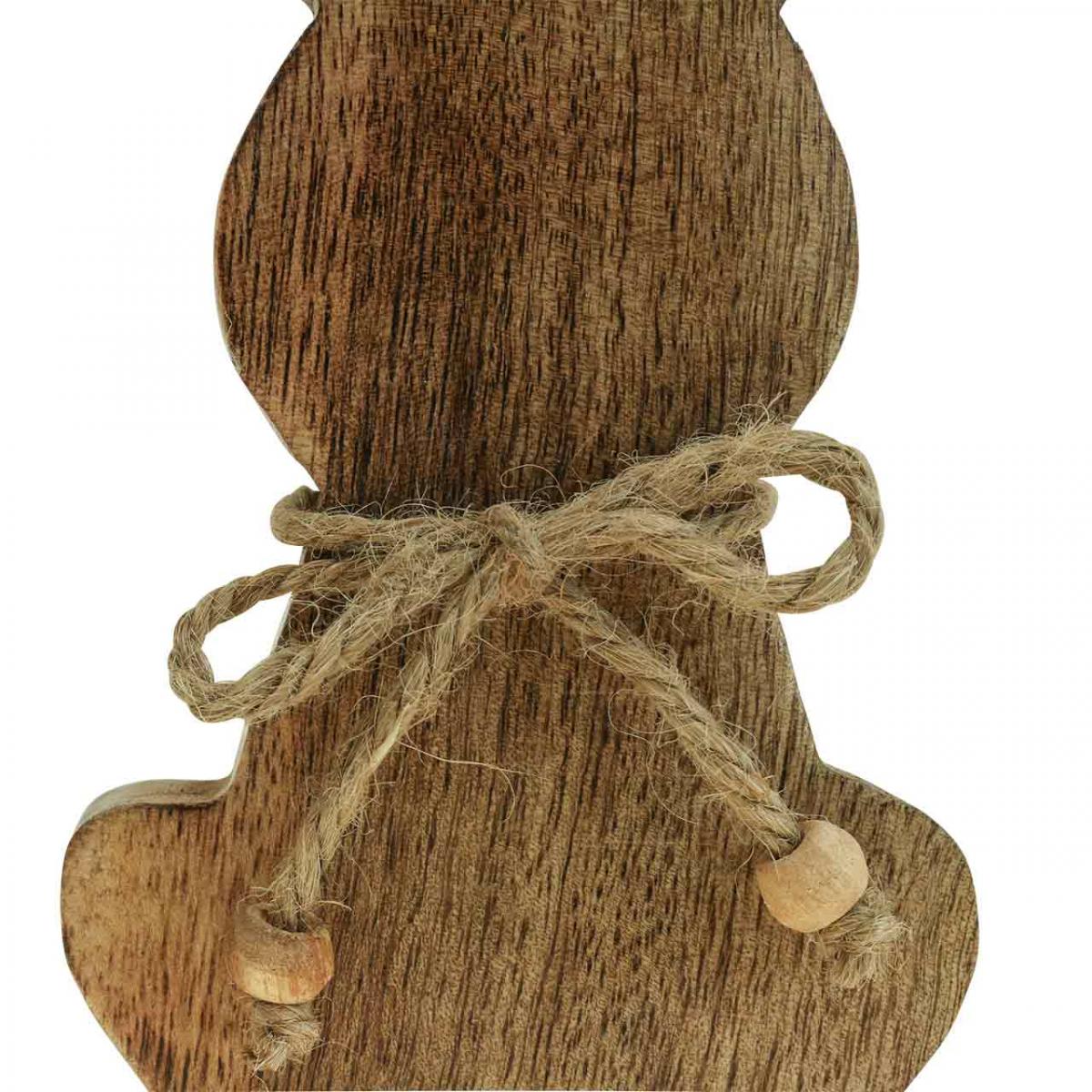 Coniglietto in legno seduto, legno di mango, decoro pasquale colori naturali H18,5cm