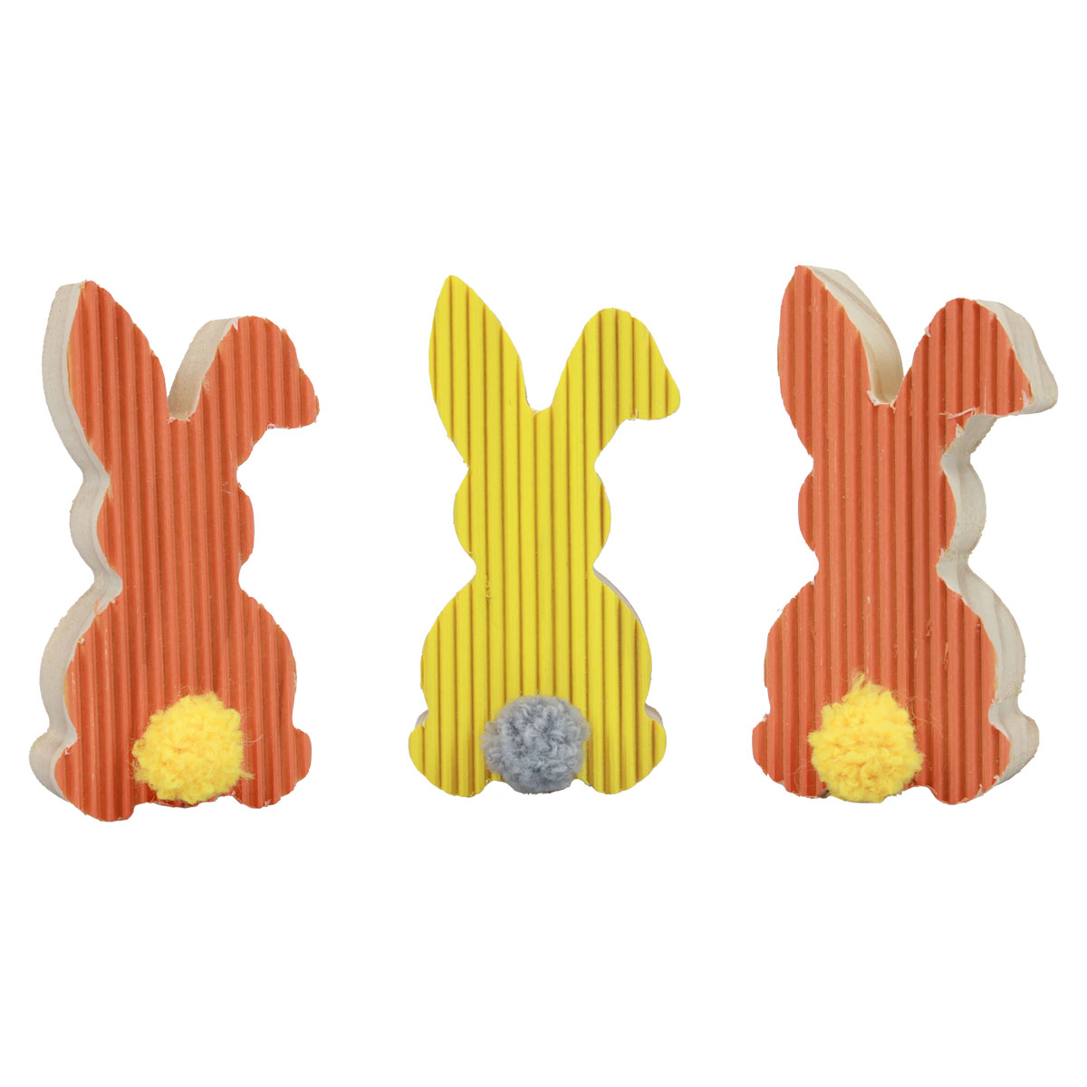 Coniglietti decorativi in legno Decorazione pasquale giallo arancio cm 4×8 6pz