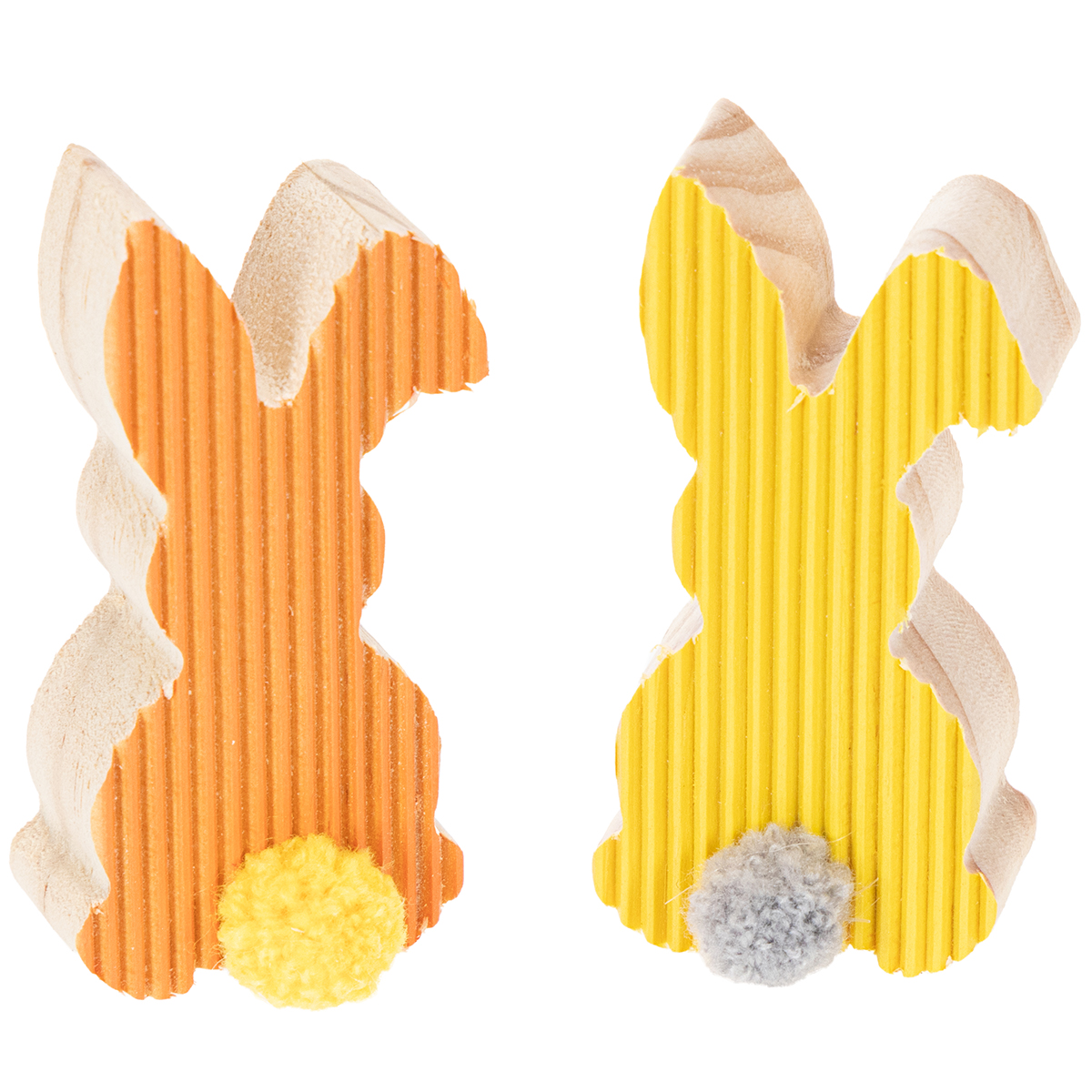 - Set aus 6 Stück: Je drei Holzhasen in Gelb und drei in Orange für harmonische Arrangements