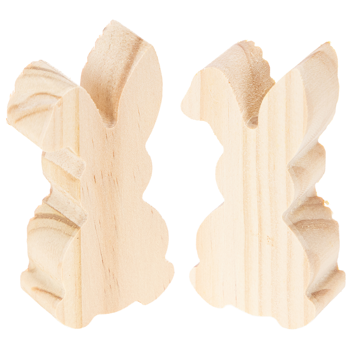 Durch die ausgefrästen Rillen entsteht eine reizvolle optische Täuschung: Die Deko-Hasen wirken zweifarbig. Dabei hat nur das Schwänzchen der Holzdeko eine andere Farbe! Die kleinen Osterhasen für die Tischdeko bestehen dabei aus massivem Echtholz. Die Rückseite und der Holzdeko ist komplett unbehandelt.