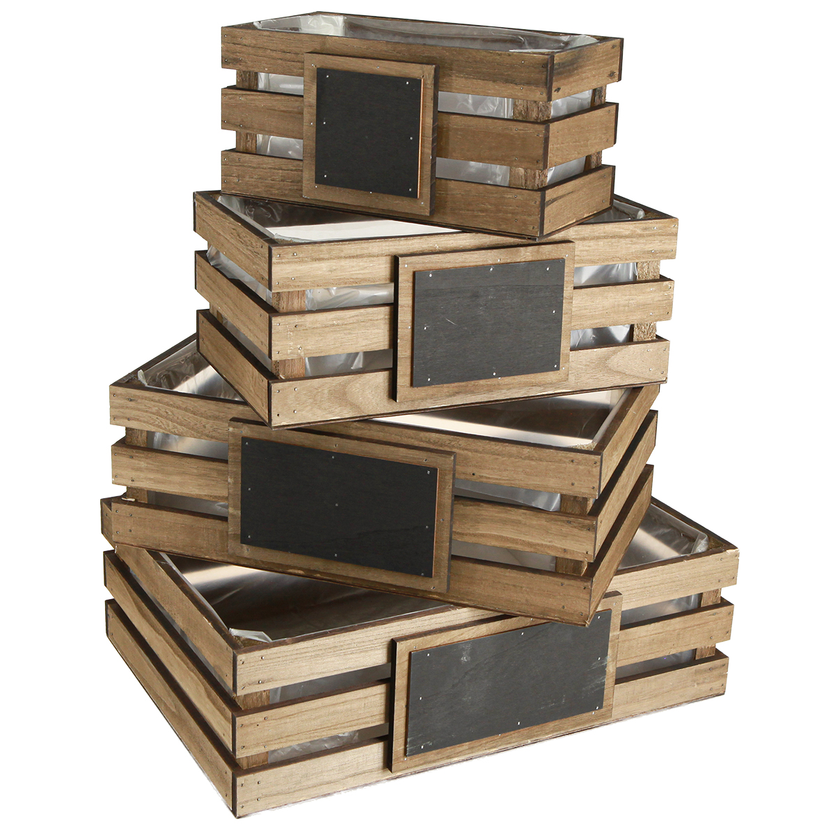 Holzkiste mit Tafel Kiste Pflanzkasten 40/35/30/25cm 4er-Set
