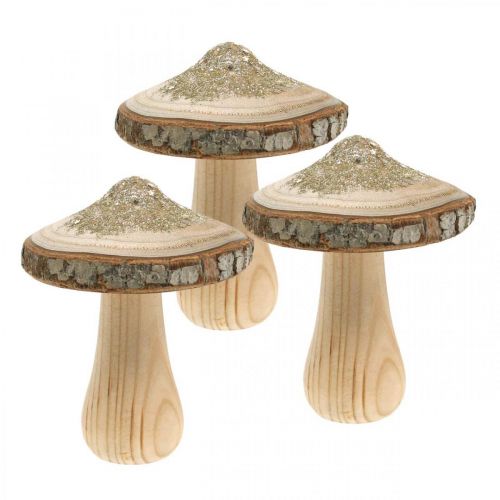 Produktname: Holzpilz Rinde und Glitter Deko Pilze Holz H8,5cm 4 St
