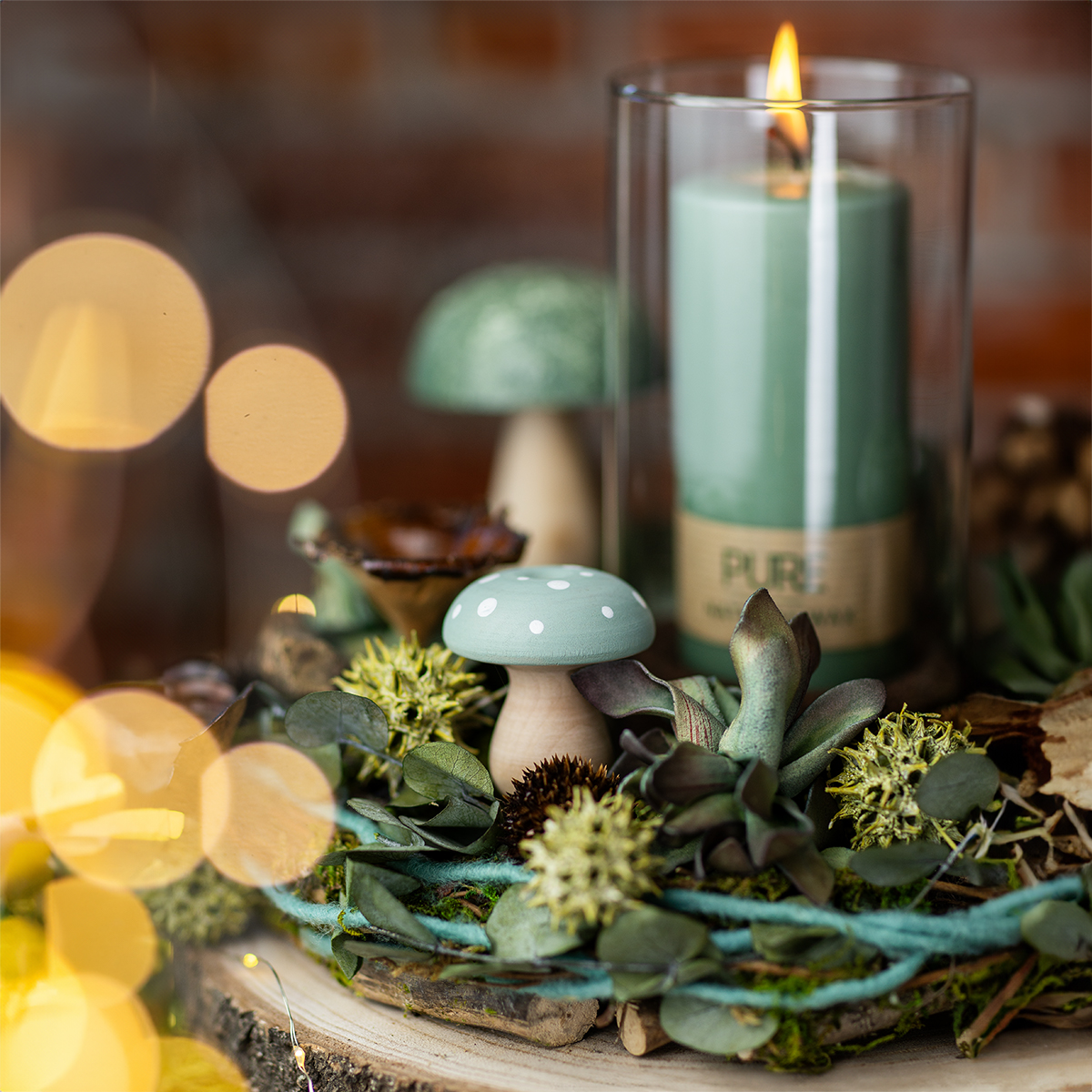 Découvrez des accents magiques d'automne avec nos champignons en bois menthe et vert foncé