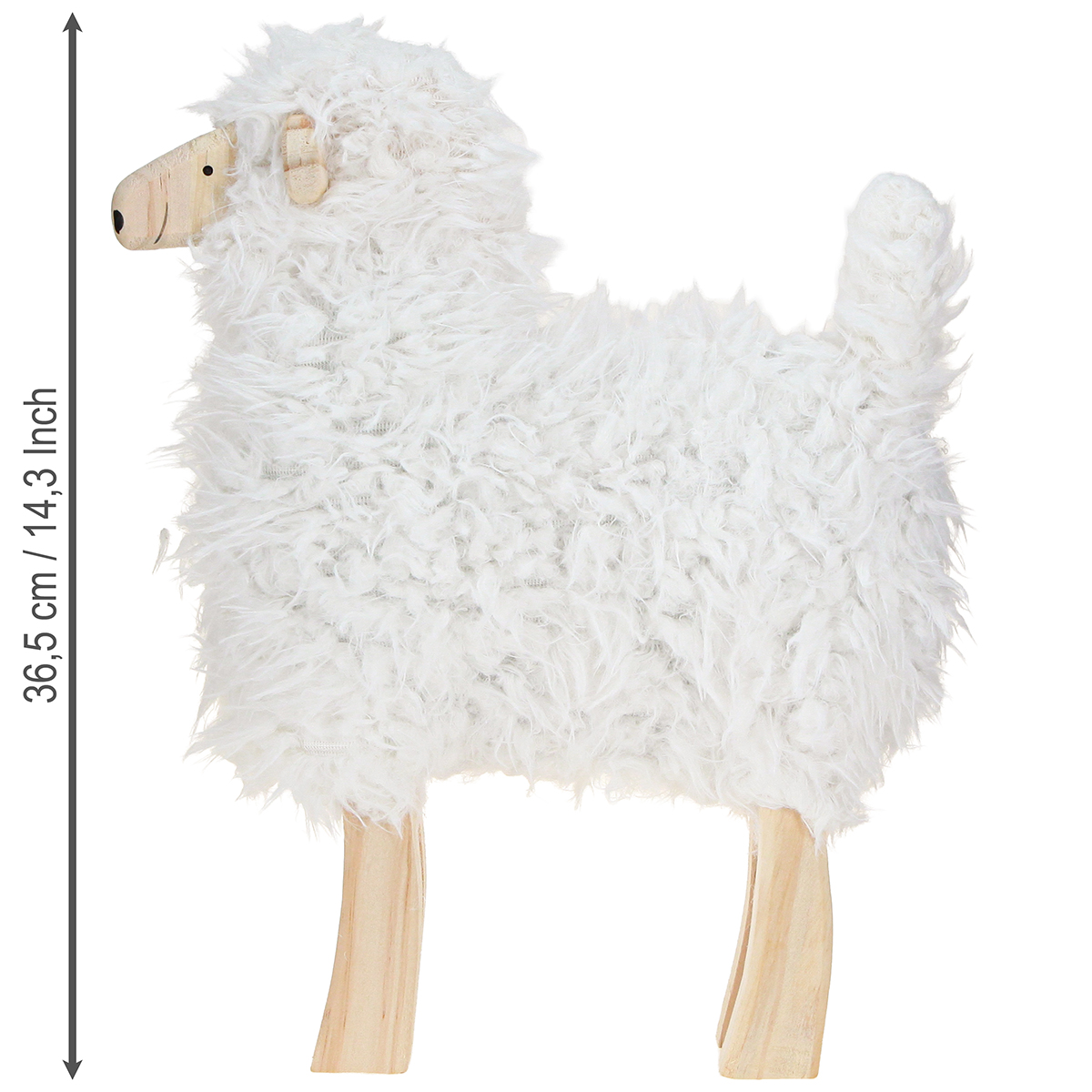 - Pecora di legno naturale con soffice lana artificiale in bianco
