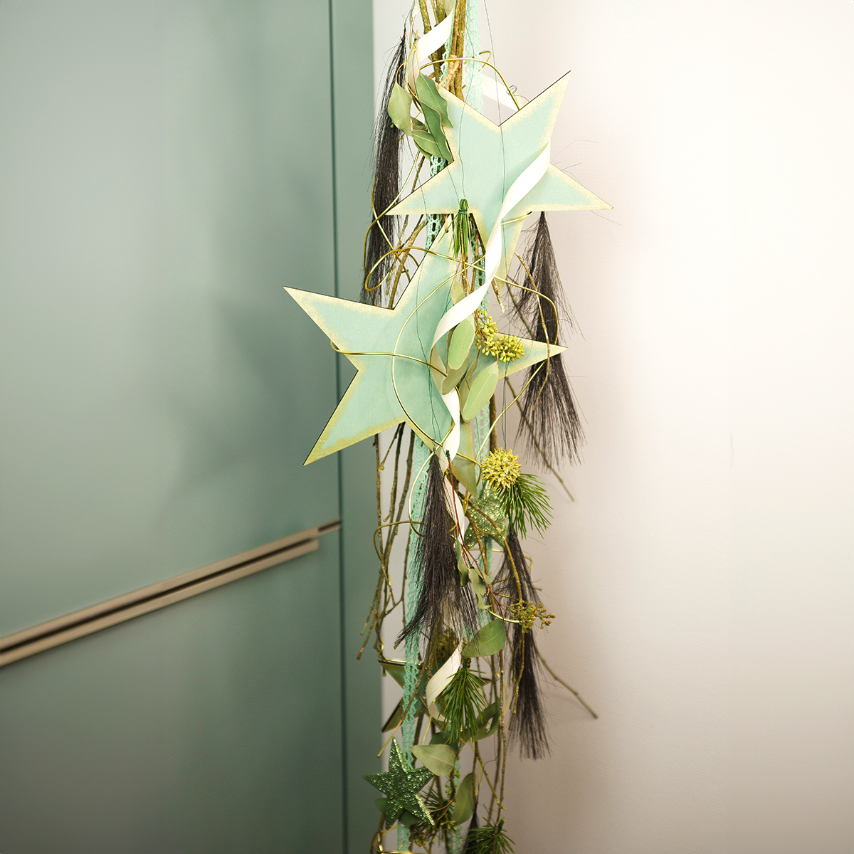 Stelle in legno da appendere: magiche decorazioni per finestre in menta e oro