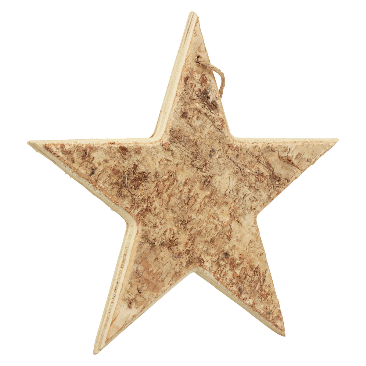 Cette étoile en bois est une décoration rustique pour Noël. L'écorce de bouleau orne le recto et le verso de cette magnifique décoration naturelle.L'étoile en bois est dotée d'un cordon de suspension composé de fibres naturelles pour correspondre à l'aspect naturel. L'écorce de bouleau lui confère le charme rustique d'une maison de campagne et avec son diamètre d'environ 20 centimètres, l'étoile en bois avec écorce attire tous les regards.