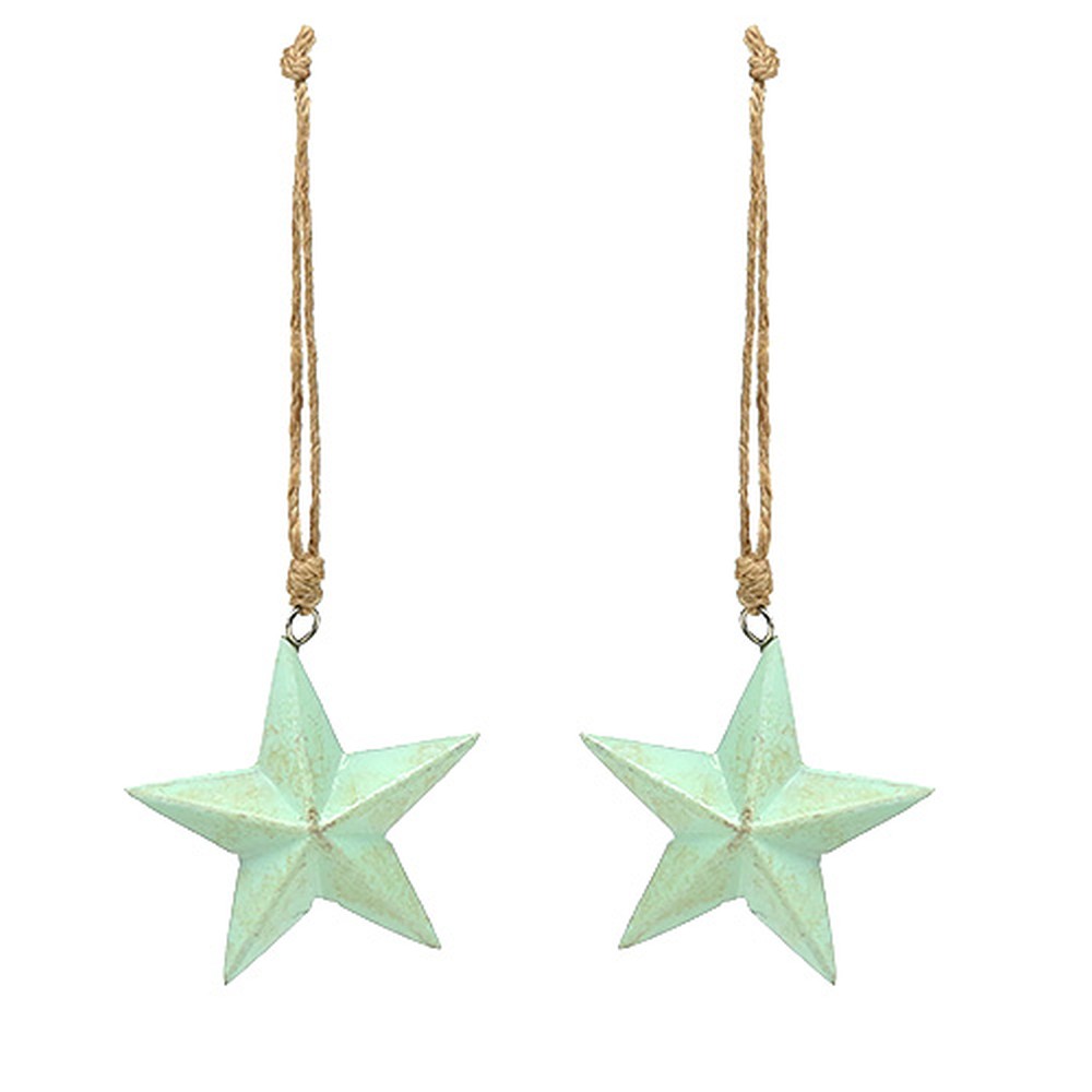 Étoiles en bois à suspendre vert clair 7,5cm 4pcs