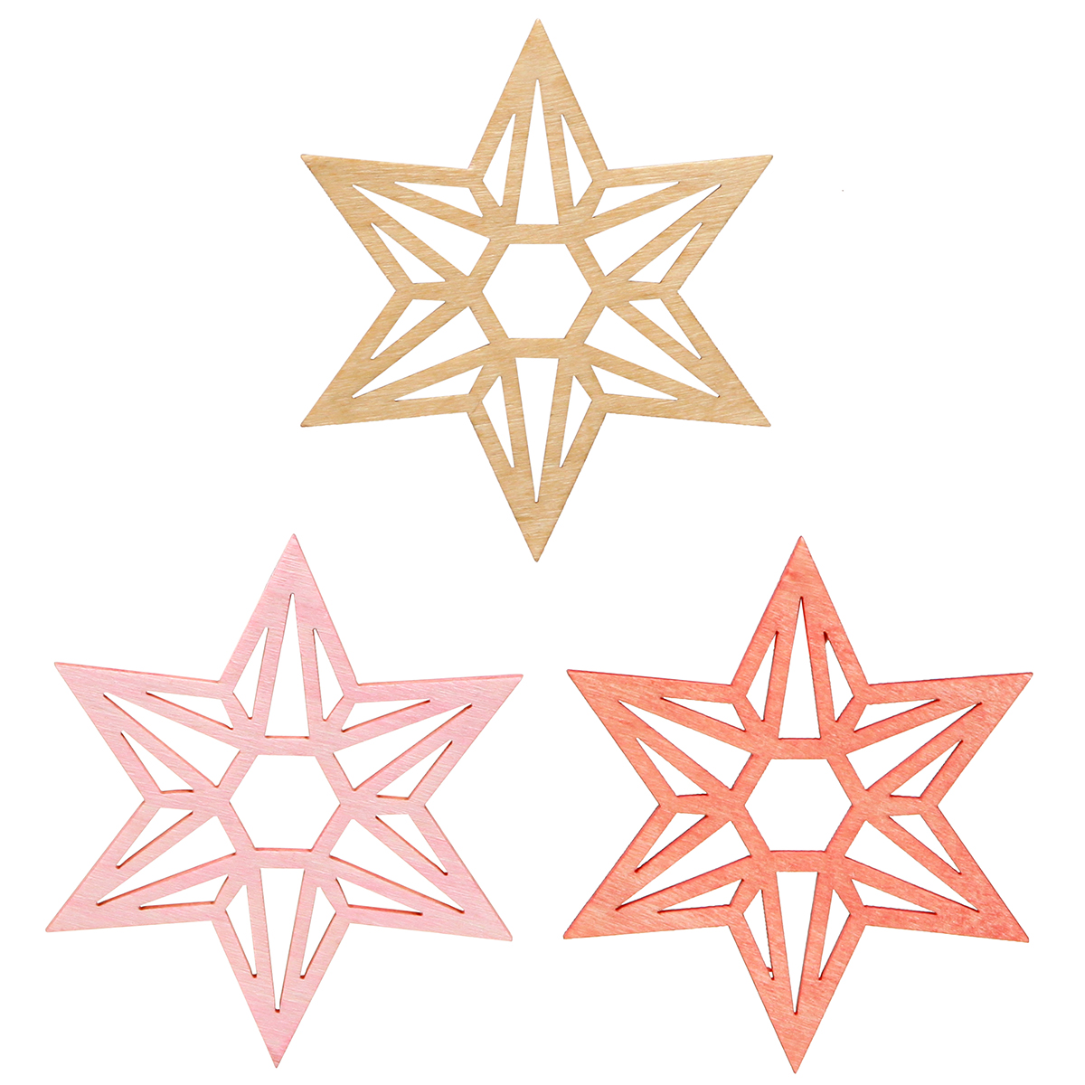 Aggiungi un tocco caldo e naturale alle tue decorazioni festive con le nostre stelle in legno accuratamente progettate. Queste stelle di Natale grandi 8 cm in arancione brillante, rosa delicato e legno naturale non trattato sono il complemento perfetto per qualsiasi decorazione festiva della tavola e per le tue idee fai-da-te. Porta splendore e intimità alla tua casa!