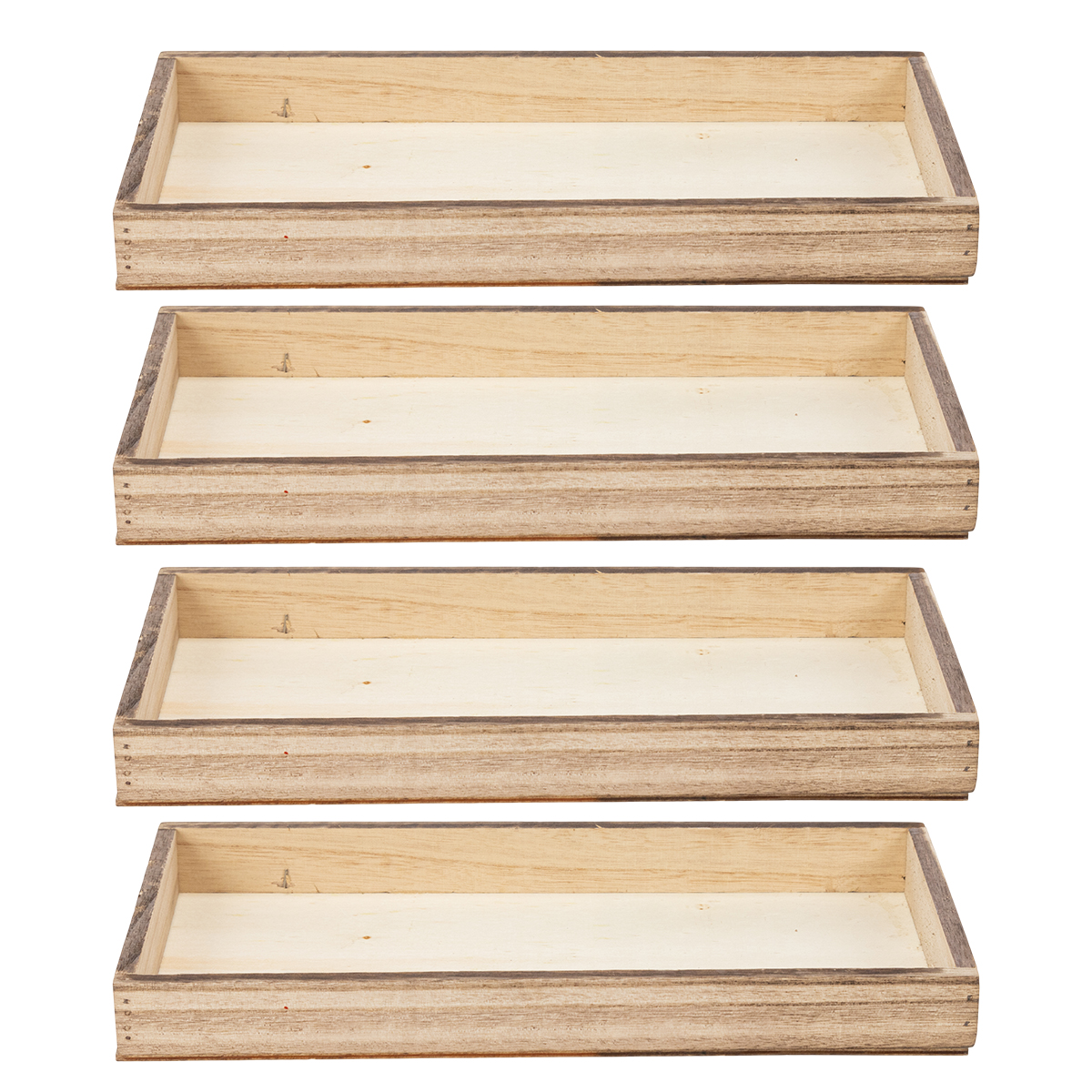 Plateau rectangulaire en bois, organisateur pratique, polyvalent et robuste, 30 cm, lot de 4