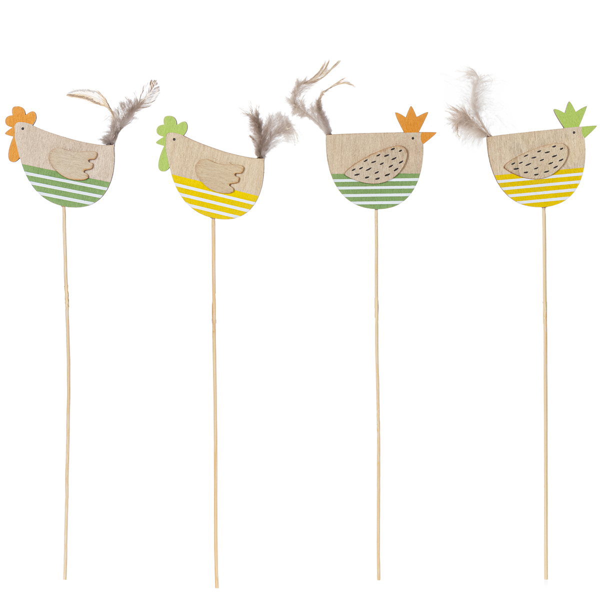 Pali di pollo con design pasquale per allegre decorazioni primaverili, 7 cm, 12 pezzi