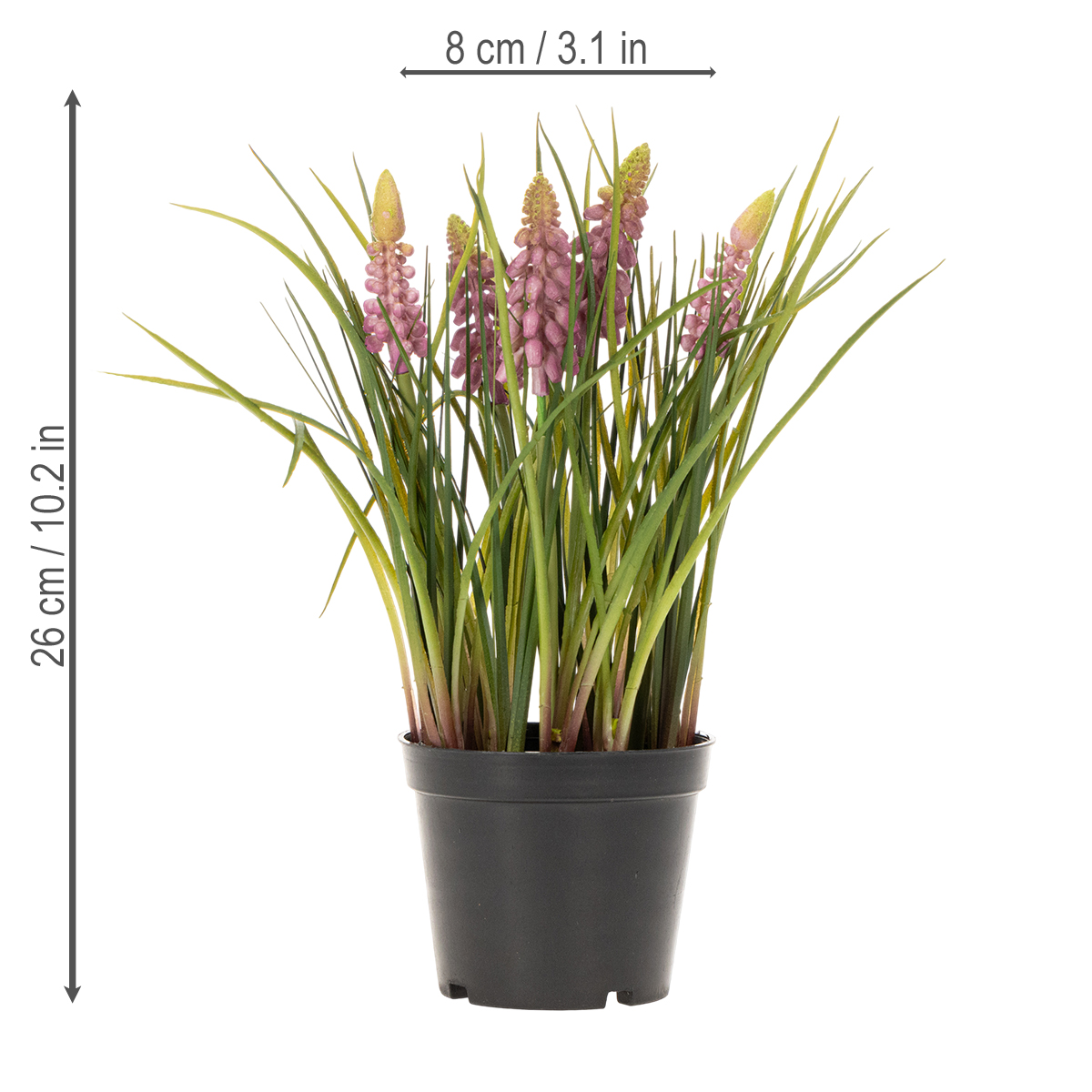 La nostra pianta di giacinto artificiale colpisce non solo per il suo aspetto realistico, ma anche per la sua versatilità. Con un diametro di 8 cm e un'altezza di 26 cm, è ideale per composizioni più piccole, come su una scrivania o sullo specchio del bagno. I fiori rosa emanano leggerezza e aggiungono un tocco delicato e femminile: perfetto per chi apprezza un interior design armonioso.