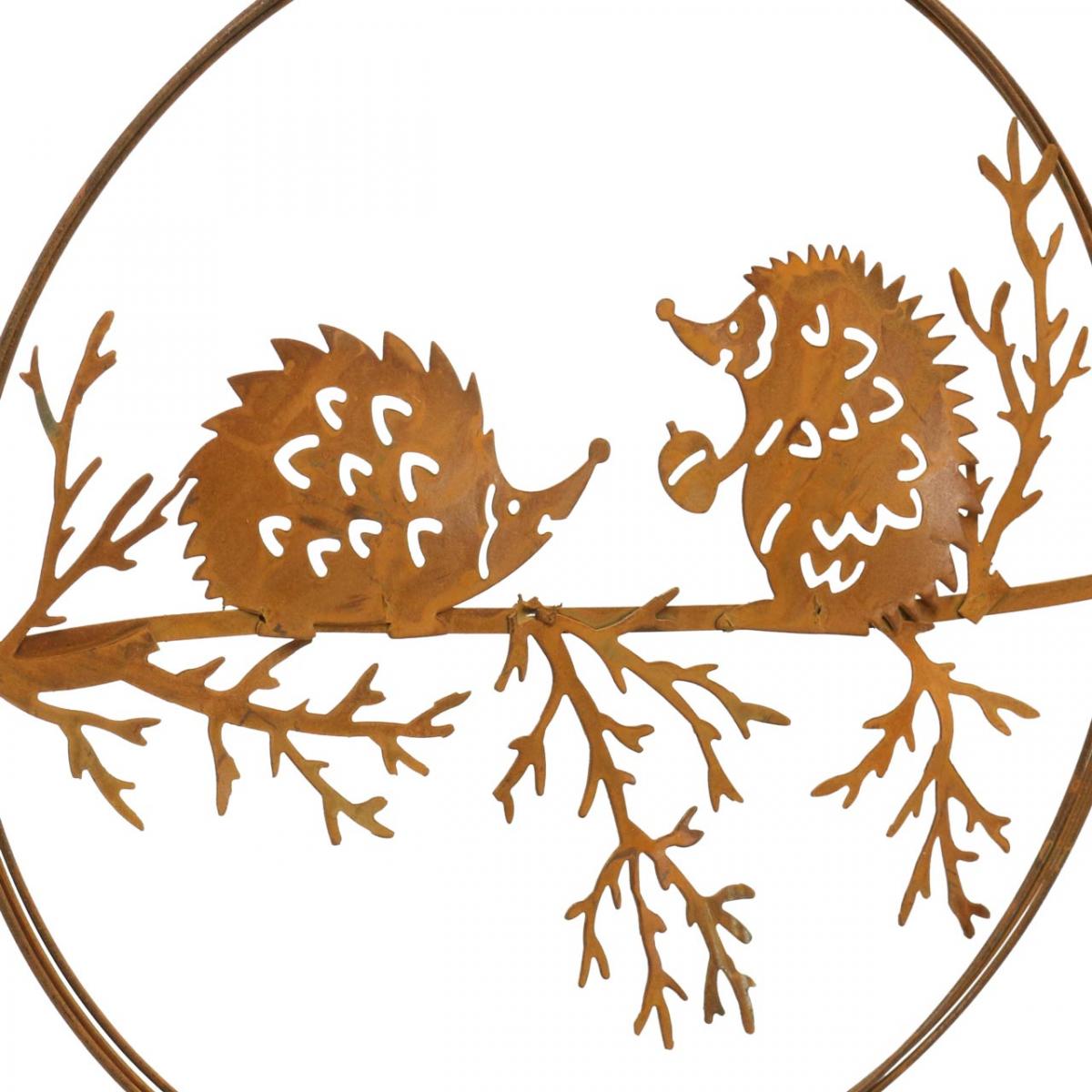 Suspension en métal, hérisson sur branche, décoration automne, anneau décoratif patiné Ø15,5cm 3 pièces