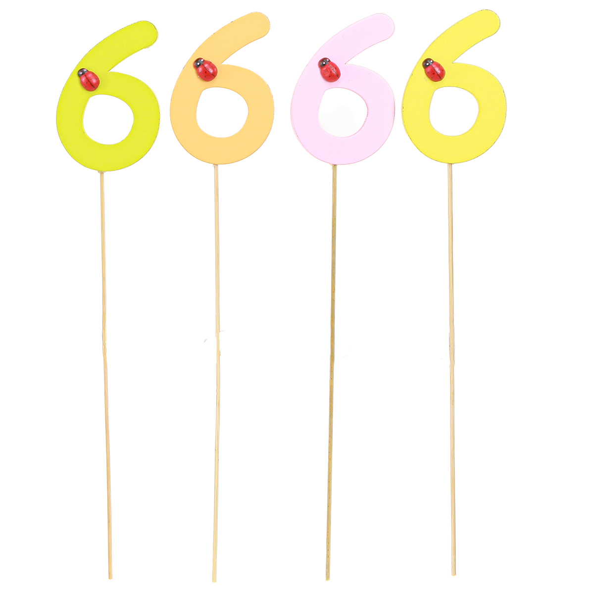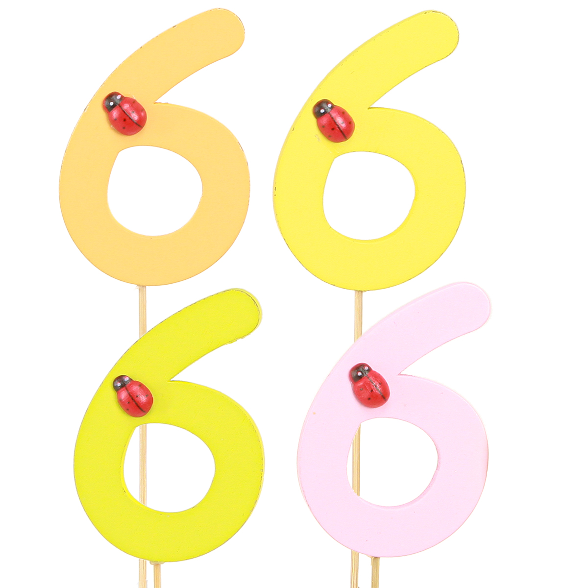 Produktname: Jubiläumszahl „6“ Holzstecker Bunt Zahlenstecker 7cm 16 St