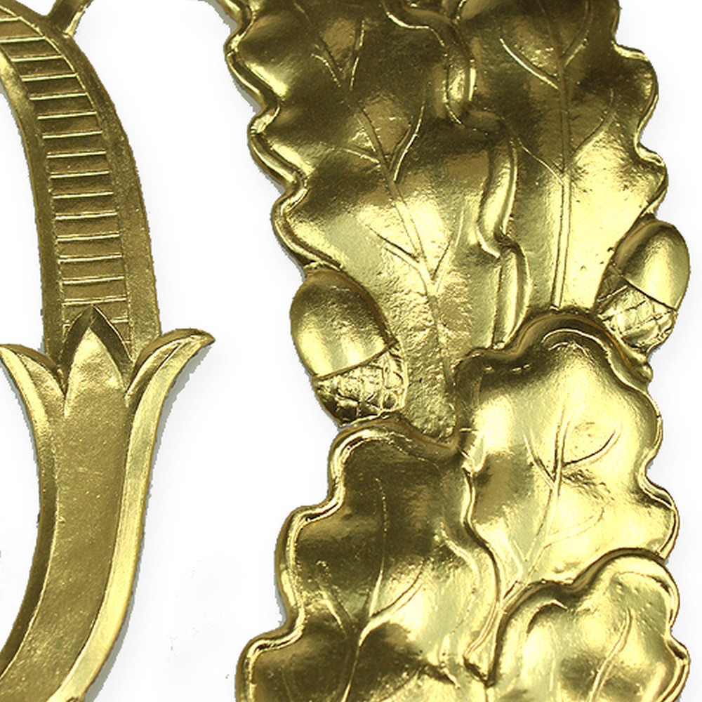 Questo numero giubilare d'oro "80" sarà il centro della tua decorazione per i compleanni e gli 80 anni! Allega il numero decorativo a una ghirlanda di piante e appendi la tua creazione su un nastro di seta come decorazione murale o decorazione della finestra. Puoi anche decorare meravigliosamente la residenza dello Schützenkönig con il numero di ghirlande.Anche con la fiaccolata di una festa di tiro, puoi tessere il numero fisso in una varietà di decorazioni. Il gran numero di compleanni è incorniciato da una ghirlanda di foglie di quercia e ghiande ed è realizzato in cartone goffrato. Grazie alla solida elaborazione, è anche possibile utilizzare più volte la corona numerica.