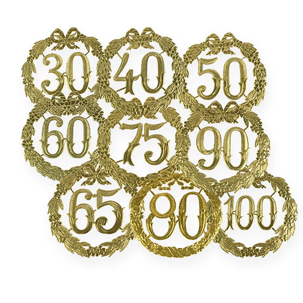 Se vuoi progettare decorazioni per compleanni, anniversari o anniversari da solo, conta su questi numeri anniversario d'oro! Ad esempio, aggiungi il numero decorativo a una bella ghirlanda e hai una decorazione della porta invitante per l'ingresso nella sala eventi o sulla porta d'ingresso del giubileo. Al gala e ai grandi festival, puoi usare il numero del compleanno come centro di una ghirlanda o come centro di una decorazione scenica.Le figure decorative sono realizzate in cartone di alta qualità, su cui la complessa decorazione - una corona d'alloro con un fiocco - è stata impressa in un processo elaborato. Ad esempio, per collegare il numero fisso a diverse superfici, è possibile utilizzare punti adesivi. Ma puoi anche infilare un filo decorativo o un nastro di seta fine attraverso la corona numerica e quindi usarlo come decorazione per finestre. Inoltre, il numero decorativo nella ghirlanda arriva in diverse decorazioni da tavola effetto molto meraviglioso.