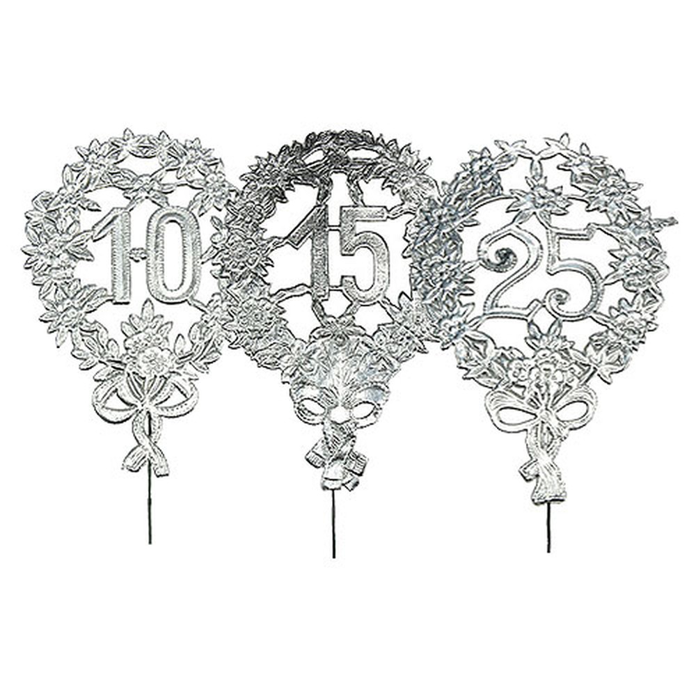 Ottieni gli anniversari in argento in una confezione da 10 pezzi, in modo da poter usare il numero decorativo in diversi luoghi. Ogni giubileo è lungo circa 28 centimetri. Il numero d'argento con corona e anello ha approssimativamente le dimensioni di 8 per 12 centimetri e ha circa le stesse dimensioni di 3,5 x 3,3 centimetri.