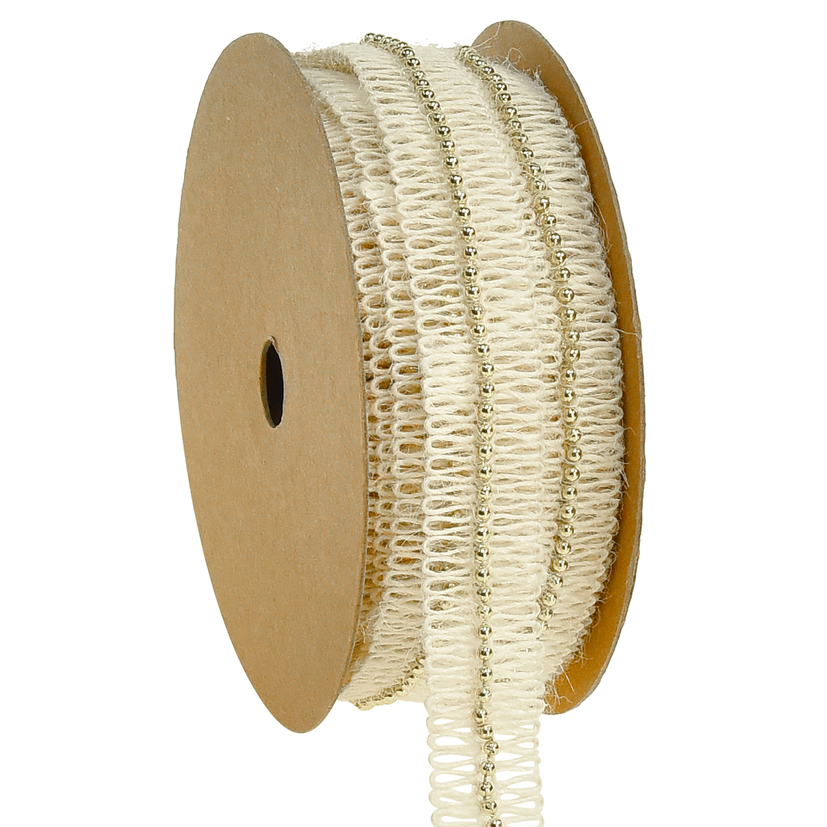 Ruban de jute ruban avec perles dorées jute crème 17mm 10m