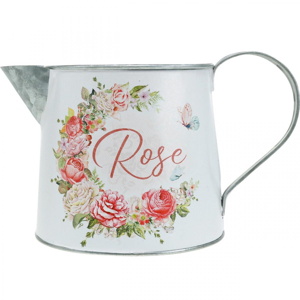 Kanne aus Metall, Pflanzgefäß, Metallgefäß mit Rosenmotiv H12cm Ø10,5c