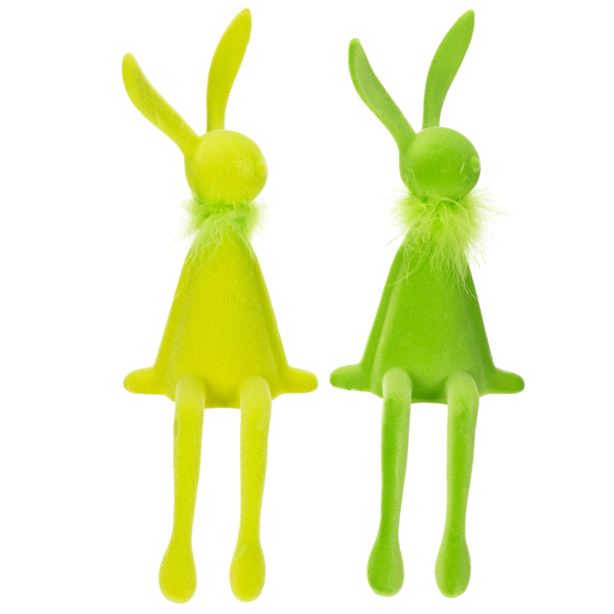 Wollen Sie Ihre Wohnung in eine festliche Frühlingswelt verwandeln? Mit diesen zauberhaften Osterhasen als Kantenhocker gelingt Ihnen das im Handumdrehen! Das Duo in frischen Grüntönen bringt nicht nur Osterstimmung ins Haus, sondern lässt jedes Wohnzimmer erstrahlen. Ob auf dem Regal, der Fensterbank oder als Highlight auf dem Esstisch: Die samtig beflockten Dekofiguren verleihen Ihrer Dekoration einen modernen und verspielten Touch. Und das Beste? Der feine Feder-Boa sorgt für das gewisse Extra – ein echter Hingucker!