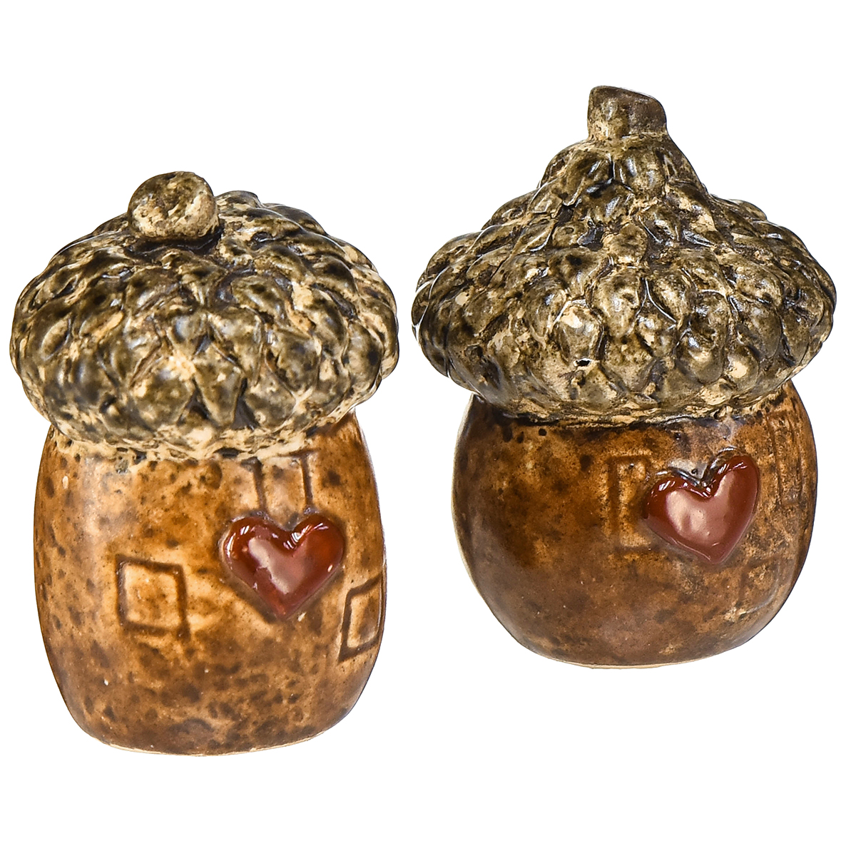 - Design automnal : Glands en céramique marron avec un charmant motif de cœur