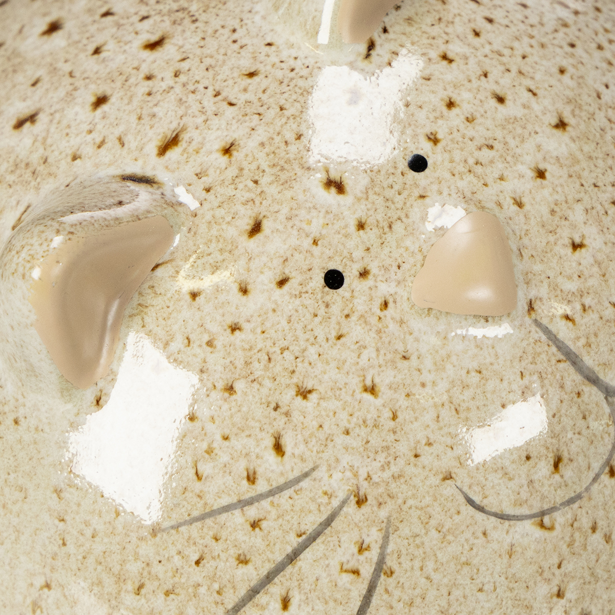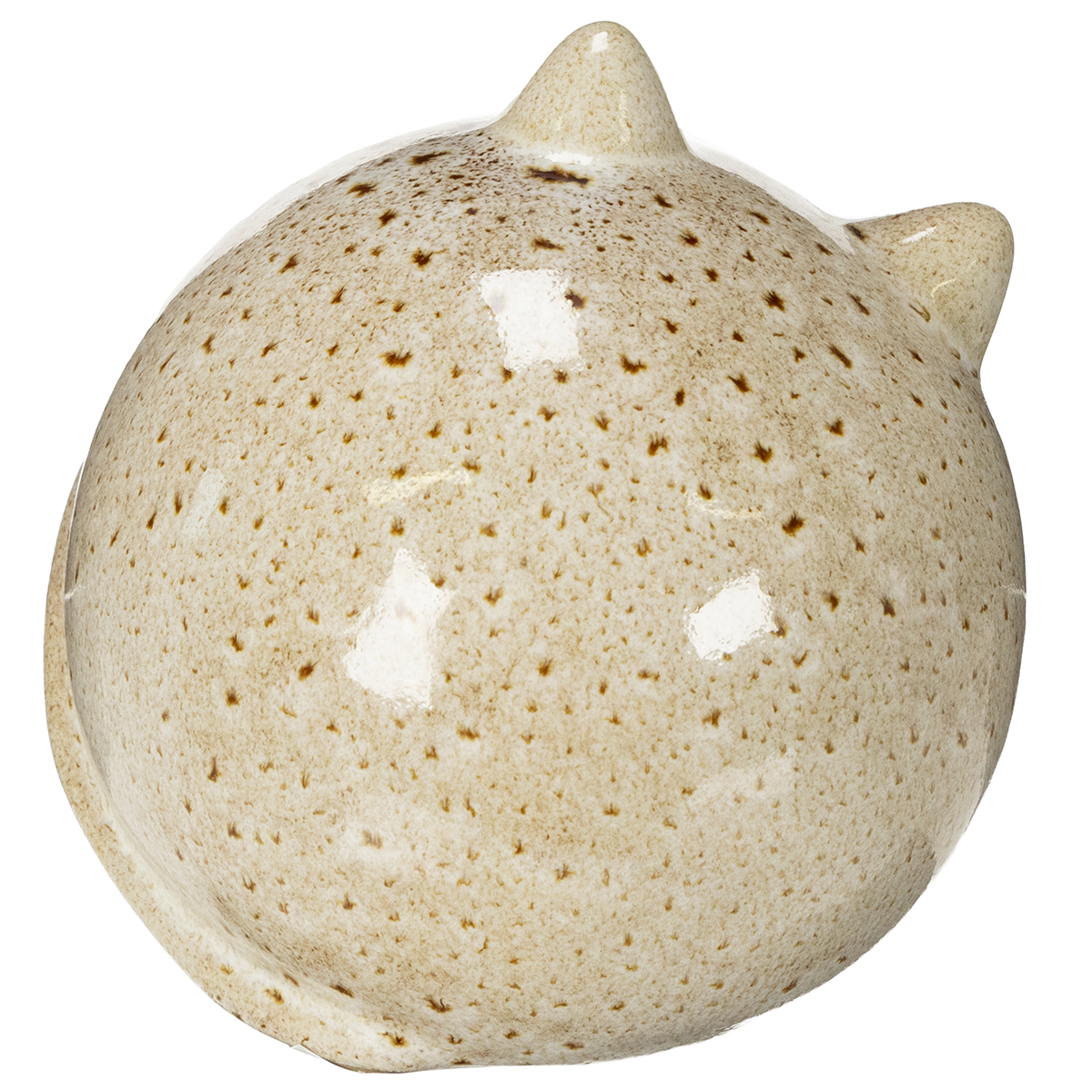 Questa statuetta in ceramica a forma di gatto non è solo una gioia per gli occhi, ma anche incredibilmente versatile. Il suo design moderno e arrotondato e la lavorazione di alta qualità emanano un'eleganza sobria. Ogni statuetta misura 13 cm di altezza, larghezza e lunghezza, il che la rende abbastanza compatta da adattarsi a qualsiasi angolo senza essere invadente. La smaltatura beige neutra consente un facile abbinamento con altre decorazioni.