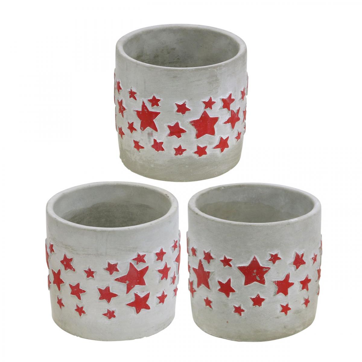 Keramikdeko Sternmuster, Pflanzgefäß, Beton-Optik, Adventsdeko Ø10,5cm H9,5cm 3St