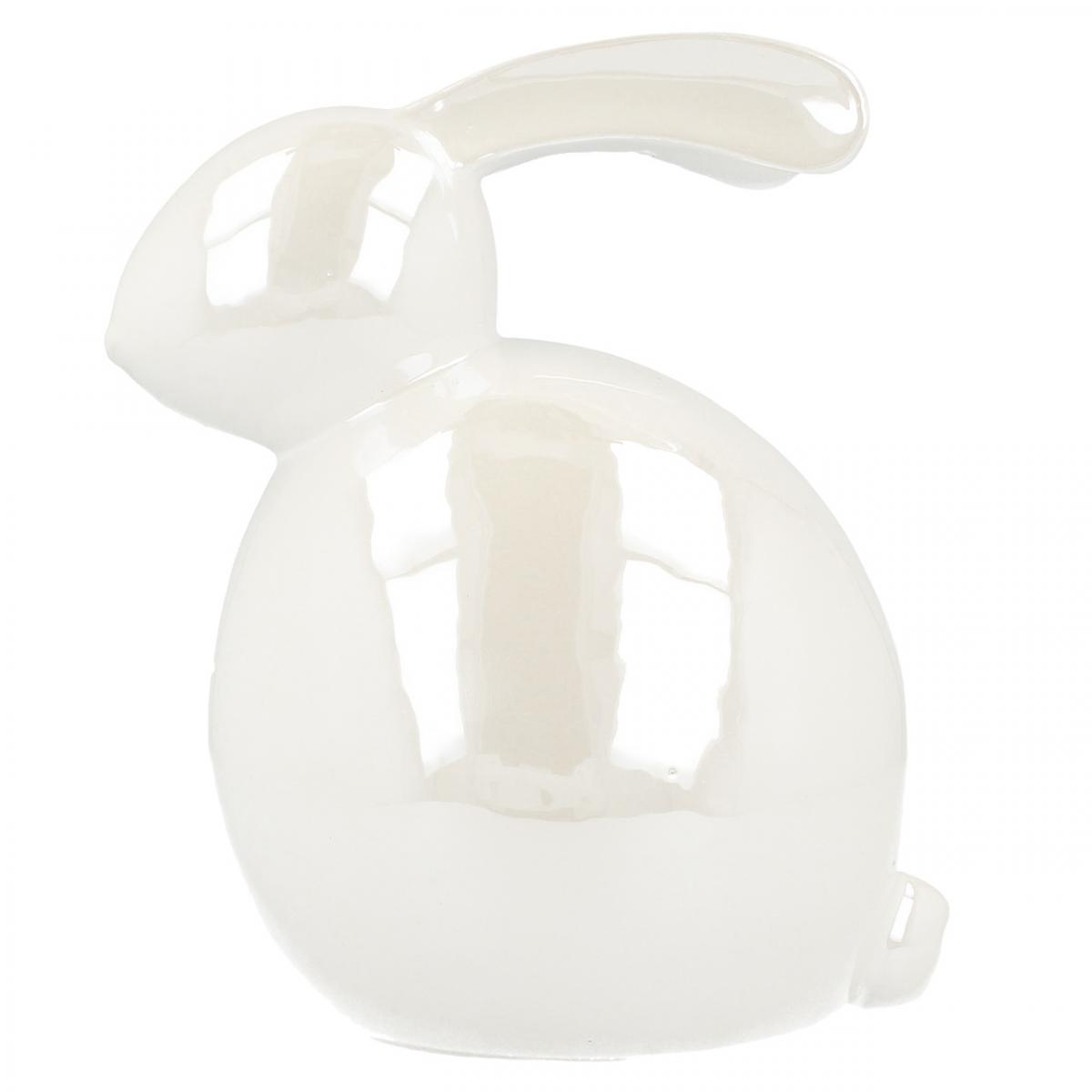 Coniglietto in ceramica, figura pasquale, decoro primaverile, coniglietto pasquale bianco, madreperla H17cm