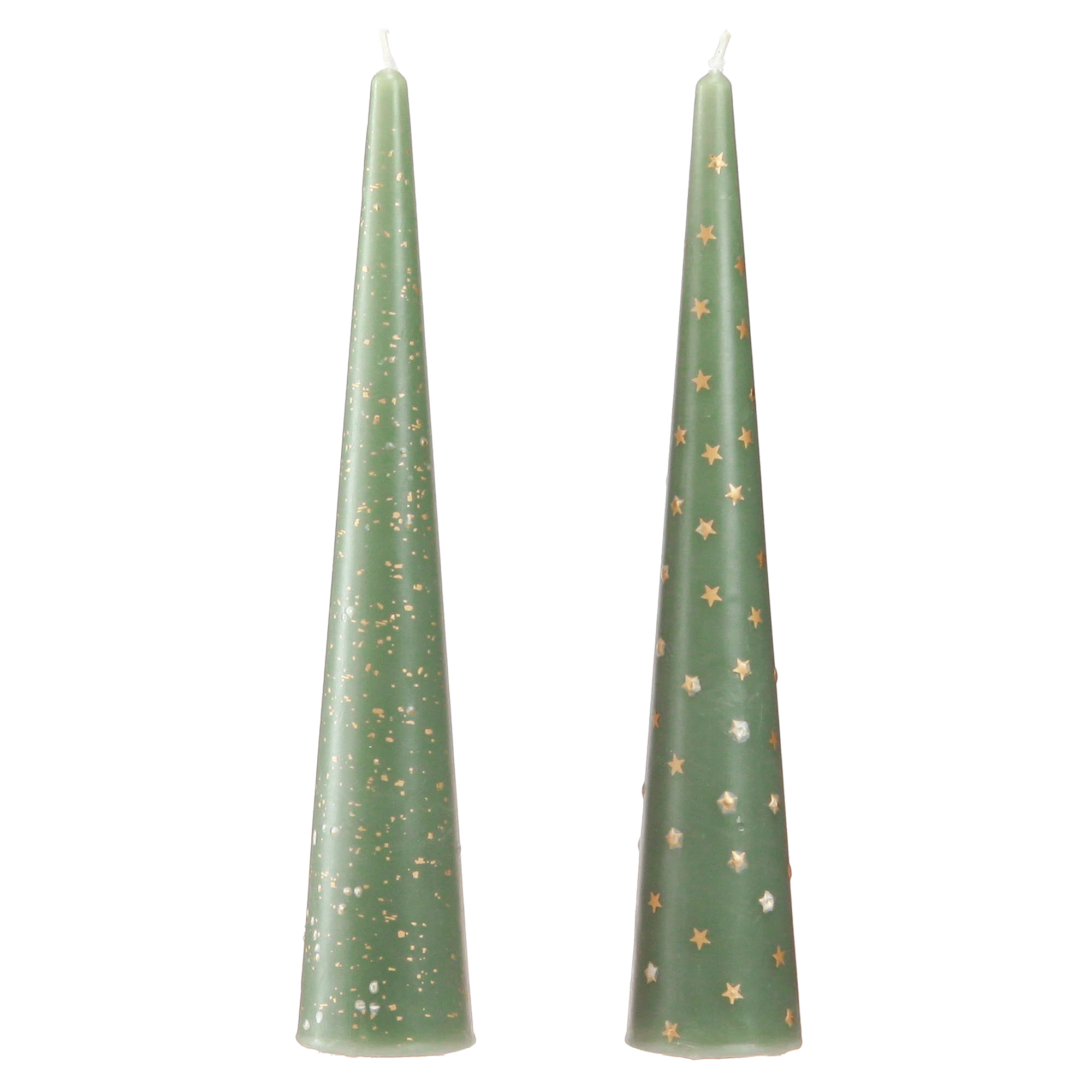 Kerze als Tannenbaum Weihnachtskerze Grün Gold Ø4,5cm H25cm 2St