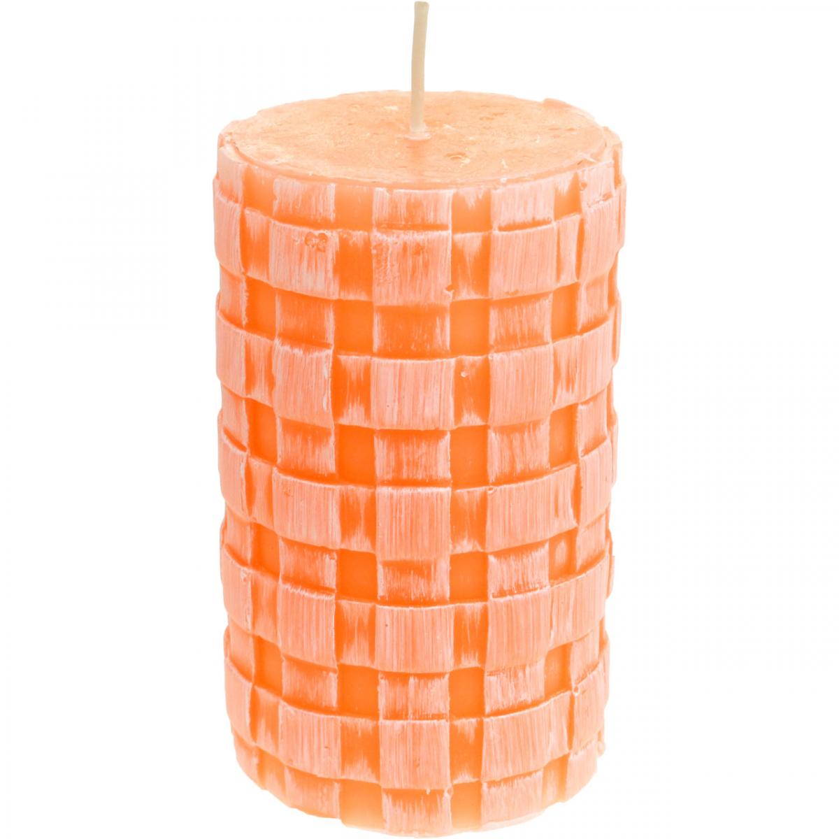 Candele rustiche a colonna arancioni con motivo a intreccio di canestro 110/65 – Confezione da 2 candele di cera premium, autoestinguenti