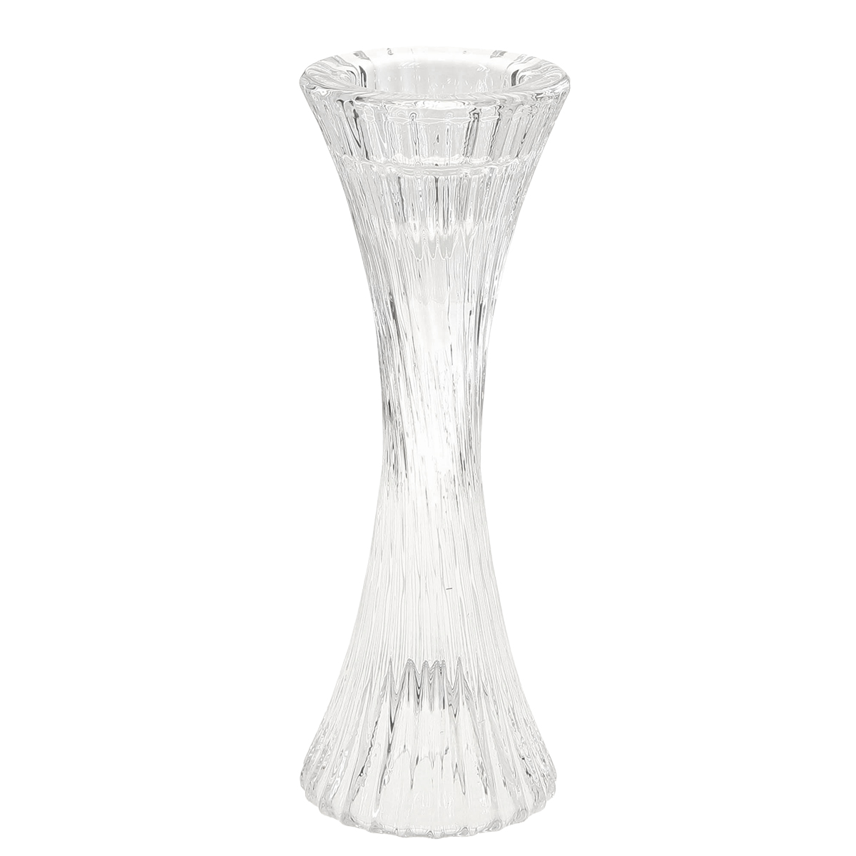 Bougeoir en verre transparent avec rainures H20cm 2pcs
